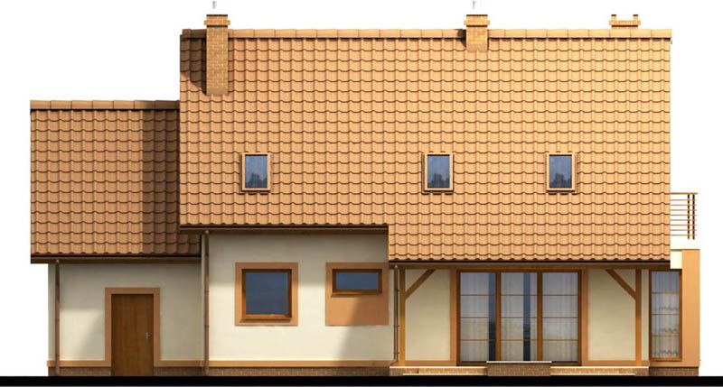 Graficzne opracowanie rzutów poglądowych widocznych na karcie projektu zostało wykonane przez Extradom.pl. Prezentowane przez Extradom.pl wizualizacje wykonane zostały przez autora projektu i należy poczytywać je jedynie za przykład i propozycję wykończenia, wizję architektoniczną autora projektu. Ostateczne wykończenie budynku może nastąpić na wiele sposobów. Szczegółowe rozwiązania zastosowane w oferowanej dokumentacji - w tym również ilość, lokalizacje i wygląd okien, drzwi, kominów - mogą w niewielkim stopniu różnić się od prezentowanej wizualizacji budynku.