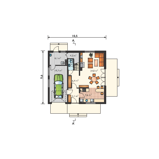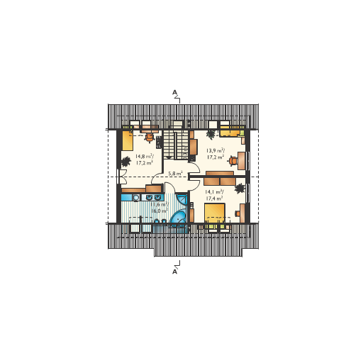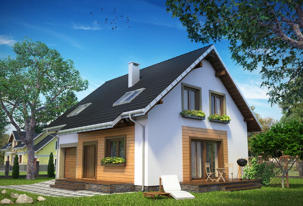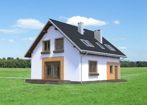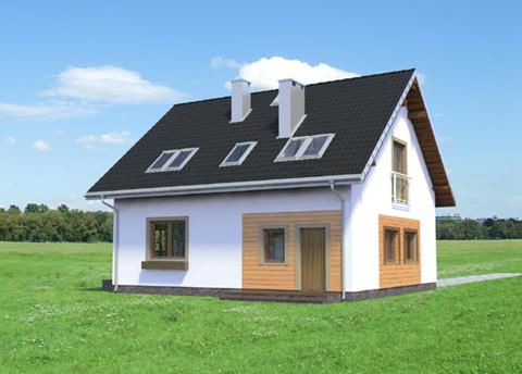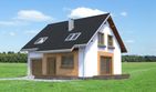 Graficzne opracowanie rzutów poglądowych widocznych na karcie projektu zostało wykonane przez Extradom.pl. Prezentowane przez Extradom.pl wizualizacje wykonane zostały przez autora projektu i należy poczytywać je jedynie za przykład i propozycję wykończenia, wizję architektoniczną autora projektu. Ostateczne wykończenie budynku może nastąpić na wiele sposobów. Szczegółowe rozwiązania zastosowane w oferowanej dokumentacji - w tym również ilość, lokalizacje i wygląd okien, drzwi, kominów - mogą w niewielkim stopniu różnić się od prezentowanej wizualizacji budynku.