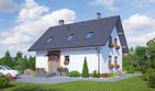 Graficzne opracowanie rzutów poglądowych widocznych na karcie projektu zostało wykonane przez Extradom.pl. Prezentowane przez Extradom.pl wizualizacje wykonane zostały przez autora projektu i należy poczytywać je jedynie za przykład i propozycję wykończenia, wizję architektoniczną autora projektu. Ostateczne wykończenie budynku może nastąpić na wiele sposobów. Szczegółowe rozwiązania zastosowane w oferowanej dokumentacji - w tym również ilość, lokalizacje i wygląd okien, drzwi, kominów - mogą w niewielkim stopniu różnić się od prezentowanej wizualizacji budynku.