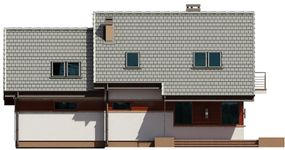 Graficzne opracowanie rzutów poglądowych widocznych na karcie projektu zostało wykonane przez Extradom.pl. Prezentowane przez Extradom.pl wizualizacje wykonane zostały przez autora projektu i należy poczytywać je jedynie za przykład i propozycję wykończenia, wizję architektoniczną autora projektu. Ostateczne wykończenie budynku może nastąpić na wiele sposobów. Szczegółowe rozwiązania zastosowane w oferowanej dokumentacji - w tym również ilość, lokalizacje i wygląd okien, drzwi, kominów - mogą w niewielkim stopniu różnić się od prezentowanej wizualizacji budynku.