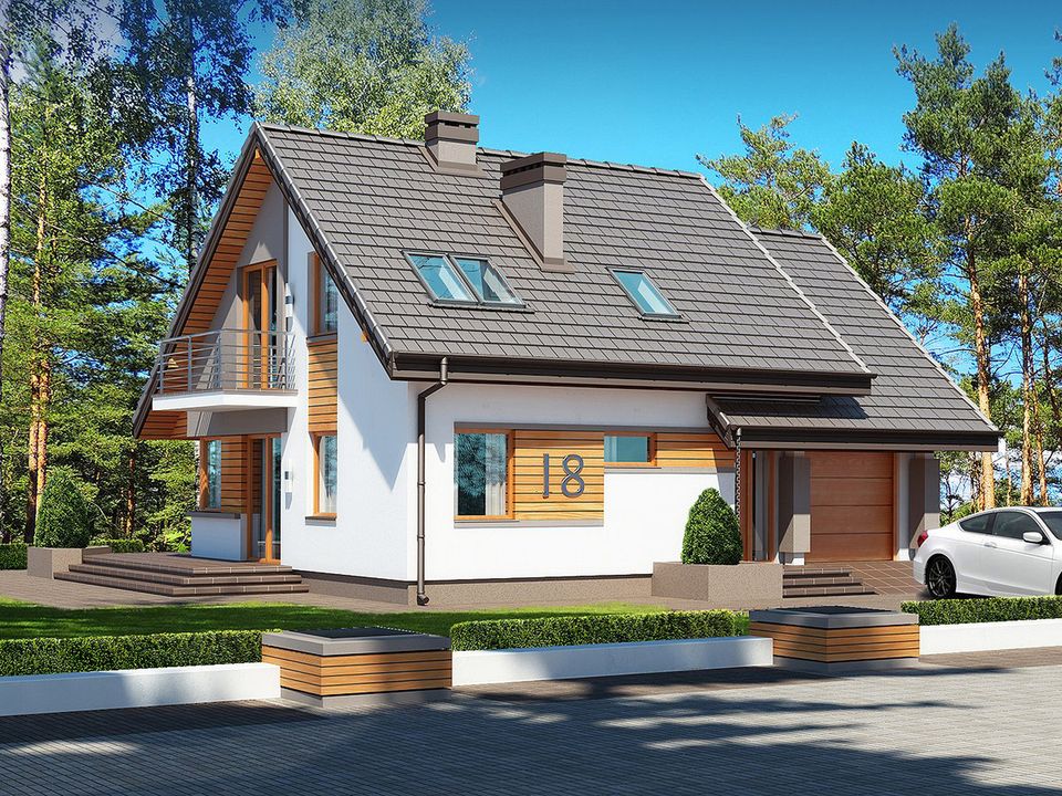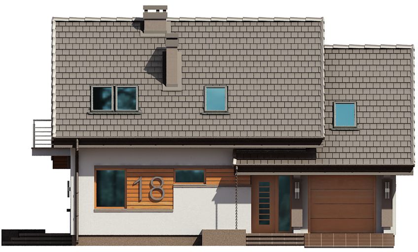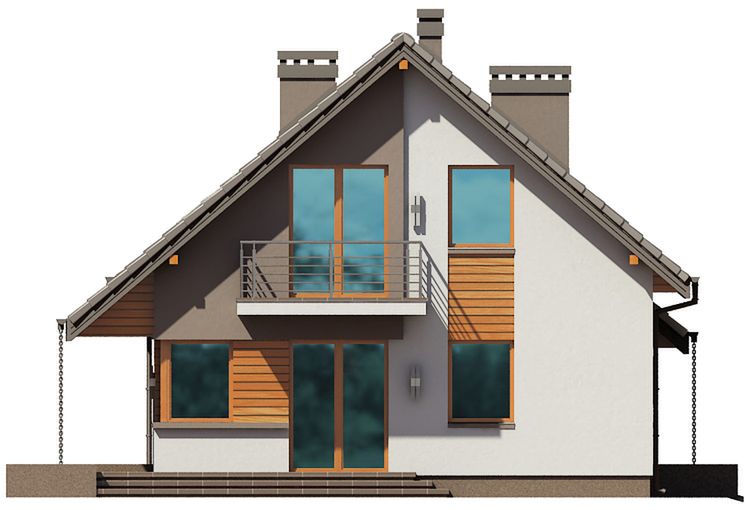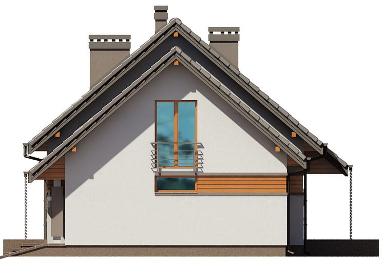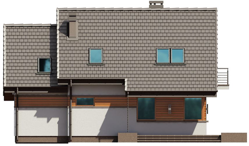 Graficzne opracowanie rzutów poglądowych widocznych na karcie projektu zostało wykonane przez Extradom.pl. Prezentowane przez Extradom.pl wizualizacje wykonane zostały przez autora projektu i należy poczytywać je jedynie za przykład i propozycję wykończenia, wizję architektoniczną autora projektu. Ostateczne wykończenie budynku może nastąpić na wiele sposobów. Szczegółowe rozwiązania zastosowane w oferowanej dokumentacji - w tym również ilość, lokalizacje i wygląd okien, drzwi, kominów - mogą w niewielkim stopniu różnić się od prezentowanej wizualizacji budynku.