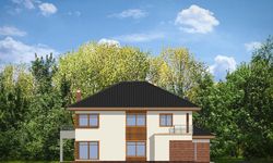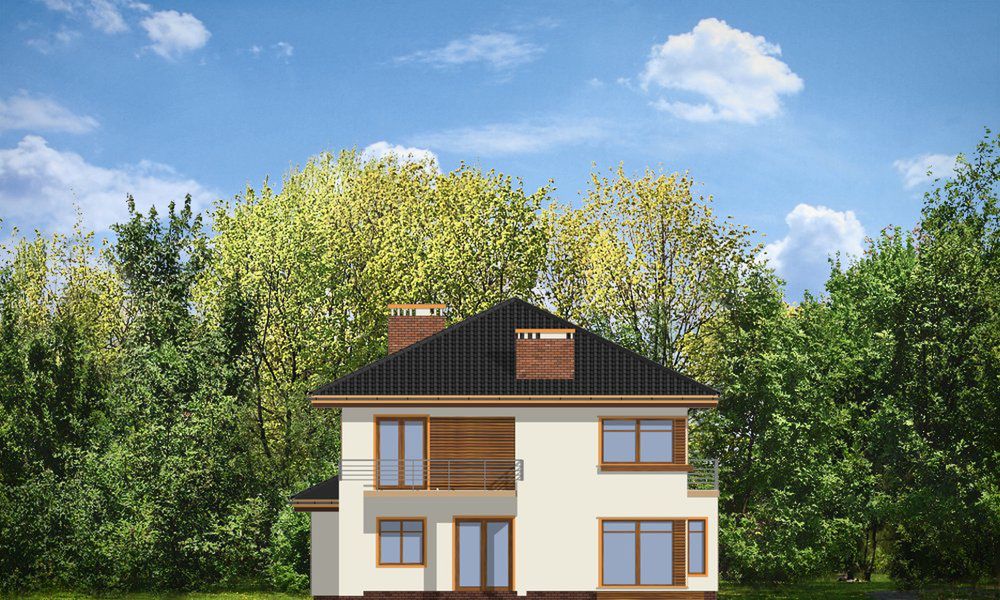 Graficzne opracowanie rzutów poglądowych widocznych na karcie projektu zostało wykonane przez Extradom.pl. Prezentowane przez Extradom.pl wizualizacje wykonane zostały przez autora projektu i należy poczytywać je jedynie za przykład i propozycję wykończenia, wizję architektoniczną autora projektu. Ostateczne wykończenie budynku może nastąpić na wiele sposobów. Szczegółowe rozwiązania zastosowane w oferowanej dokumentacji - w tym również ilość, lokalizacje i wygląd okien, drzwi, kominów - mogą w niewielkim stopniu różnić się od prezentowanej wizualizacji budynku.
