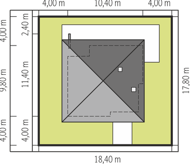 Graficzne opracowanie rzutów poglądowych widocznych na karcie projektu zostało wykonane przez Extradom.pl. Prezentowane przez Extradom.pl wizualizacje wykonane zostały przez autora projektu i należy poczytywać je jedynie za przykład i propozycję wykończenia, wizję architektoniczną autora projektu. Ostateczne wykończenie budynku może nastąpić na wiele sposobów. Szczegółowe rozwiązania zastosowane w oferowanej dokumentacji - w tym również ilość, lokalizacje i wygląd okien, drzwi, kominów - mogą w niewielkim stopniu różnić się od prezentowanej wizualizacji budynku.
