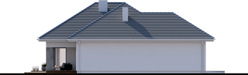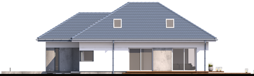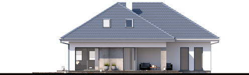 Graficzne opracowanie rzutów poglądowych widocznych na karcie projektu zostało wykonane przez Extradom.pl. Prezentowane przez Extradom.pl wizualizacje wykonane zostały przez autora projektu i należy poczytywać je jedynie za przykład i propozycję wykończenia, wizję architektoniczną autora projektu. Ostateczne wykończenie budynku może nastąpić na wiele sposobów. Szczegółowe rozwiązania zastosowane w oferowanej dokumentacji - w tym również ilość, lokalizacje i wygląd okien, drzwi, kominów - mogą w niewielkim stopniu różnić się od prezentowanej wizualizacji budynku.