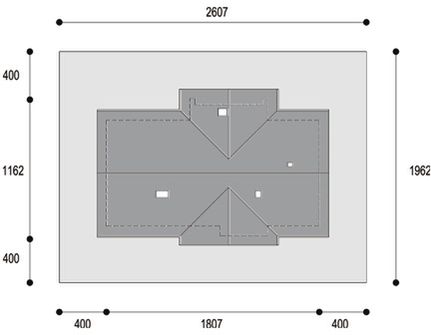Graficzne opracowanie rzutów poglądowych widocznych na karcie projektu zostało wykonane przez Extradom.pl. Prezentowane przez Extradom.pl wizualizacje wykonane zostały przez autora projektu i należy poczytywać je jedynie za przykład i propozycję wykończenia, wizję architektoniczną autora projektu. Ostateczne wykończenie budynku może nastąpić na wiele sposobów. Szczegółowe rozwiązania zastosowane w oferowanej dokumentacji - w tym również ilość, lokalizacje i wygląd okien, drzwi, kominów - mogą w niewielkim stopniu różnić się od prezentowanej wizualizacji budynku.