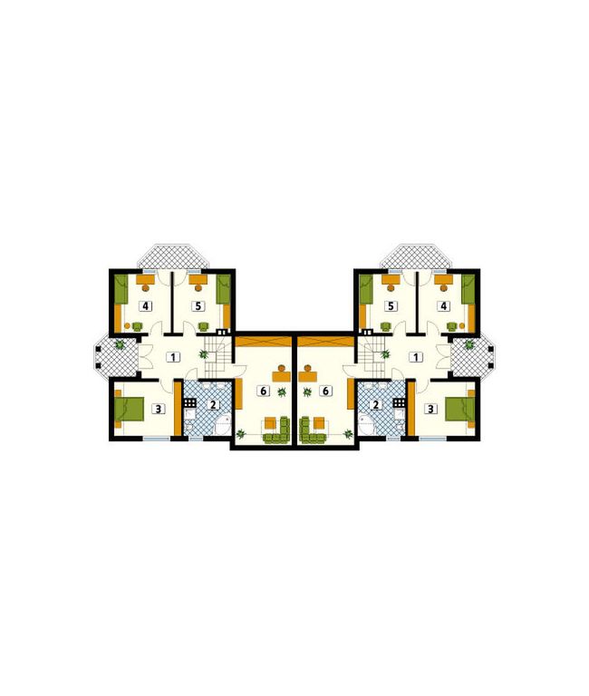Graficzne opracowanie rzutów poglądowych widocznych na karcie projektu zostało wykonane przez Extradom.pl. Prezentowane przez Extradom.pl wizualizacje wykonane zostały przez autora projektu i należy poczytywać je jedynie za przykład i propozycję wykończenia, wizję architektoniczną autora projektu. Ostateczne wykończenie budynku może nastąpić na wiele sposobów. Szczegółowe rozwiązania zastosowane w oferowanej dokumentacji - w tym również ilość, lokalizacje i wygląd okien, drzwi, kominów - mogą w niewielkim stopniu różnić się od prezentowanej wizualizacji budynku.
