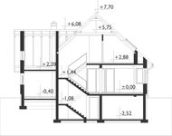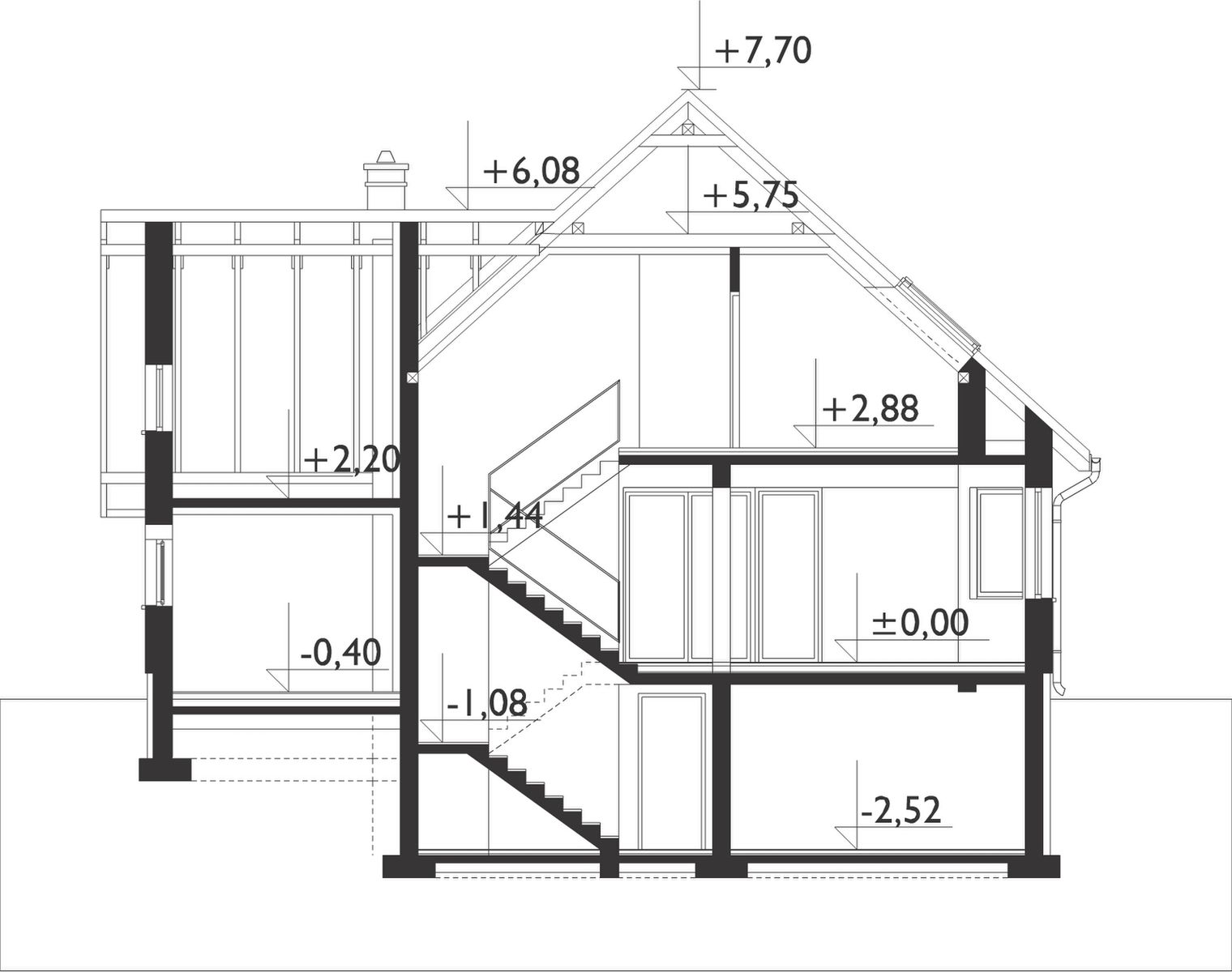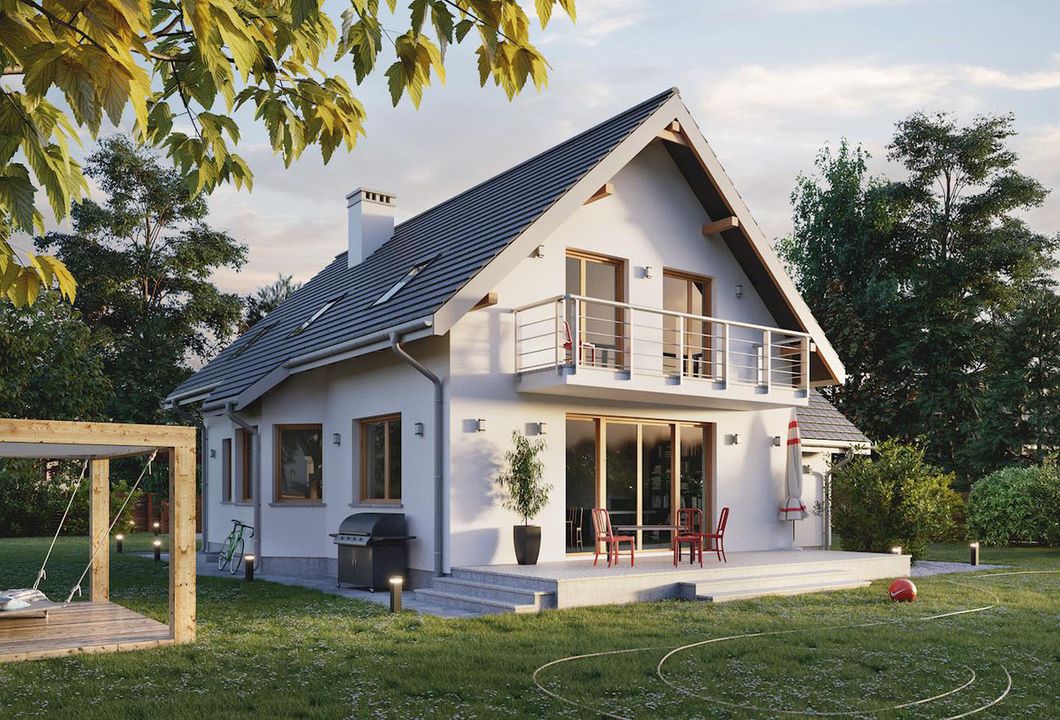 Technologia i konstrukcja: murowana – beton komórkowy. Ściany zewnętrzne: beton komórkowy YTONG Energo gr.36,5cm. Ściany wewnętrzne: bloczki silikatowe SILKA gr.24 cm i 12cm, na poddaszu ścianki g-k wypełnione wełną mineralną ROCKTON gr. 10 cm. Strop: żelbetowy. Konstrukcja dachu: drewniana, jętkowa. Rodzaj schodów: żelbetowe. Typ ogrzewania: kocioł na gaz. Aneks na paliwo stałe: dostępny (zapytaj o cenę). Pokrycie dachu: dachówka cementowa. Elewacja: tynki silikonowe, silikatowe lub mineralne firmy BOLIX na siatce.
