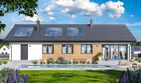 Graficzne opracowanie rzutów poglądowych widocznych na karcie projektu zostało wykonane przez Extradom.pl. Prezentowane przez Extradom.pl wizualizacje wykonane zostały przez autora projektu i należy poczytywać je jedynie za przykład i propozycję wykończenia, wizję architektoniczną autora projektu. Ostateczne wykończenie budynku może nastąpić na wiele sposobów. Szczegółowe rozwiązania zastosowane w oferowanej dokumentacji - w tym również ilość, lokalizacje i wygląd okien, drzwi, kominów - mogą w niewielkim stopniu różnić się od prezentowanej wizualizacji budynku.
