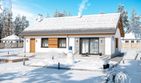 Graficzne opracowanie rzutów poglądowych widocznych na karcie projektu zostało wykonane przez Extradom.pl. Prezentowane przez Extradom.pl wizualizacje wykonane zostały przez autora projektu i należy poczytywać je jedynie za przykład i propozycję wykończenia, wizję architektoniczną autora projektu. Ostateczne wykończenie budynku może nastąpić na wiele sposobów. Szczegółowe rozwiązania zastosowane w oferowanej dokumentacji - w tym również ilość, lokalizacje i wygląd okien, drzwi, kominów - mogą w niewielkim stopniu różnić się od prezentowanej wizualizacji budynku.
