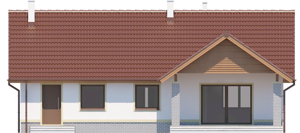 Graficzne opracowanie rzutów poglądowych widocznych na karcie projektu zostało wykonane przez Extradom.pl. Prezentowane przez Extradom.pl wizualizacje wykonane zostały przez autora projektu i należy poczytywać je jedynie za przykład i propozycję wykończenia, wizję architektoniczną autora projektu. Ostateczne wykończenie budynku może nastąpić na wiele sposobów. Szczegółowe rozwiązania zastosowane w oferowanej dokumentacji - w tym również ilość, lokalizacje i wygląd okien, drzwi, kominów - mogą w niewielkim stopniu różnić się od prezentowanej wizualizacji budynku.