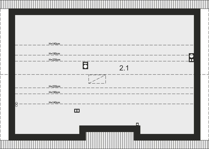 Graficzne opracowanie rzutów poglądowych widocznych na karcie projektu zostało wykonane przez Extradom.pl. Prezentowane przez Extradom.pl wizualizacje wykonane zostały przez autora projektu i należy poczytywać je jedynie za przykład i propozycję wykończenia, wizję architektoniczną autora projektu. Ostateczne wykończenie budynku może nastąpić na wiele sposobów. Szczegółowe rozwiązania zastosowane w oferowanej dokumentacji - w tym również ilość, lokalizacje i wygląd okien, drzwi, kominów - mogą w niewielkim stopniu różnić się od prezentowanej wizualizacji budynku.