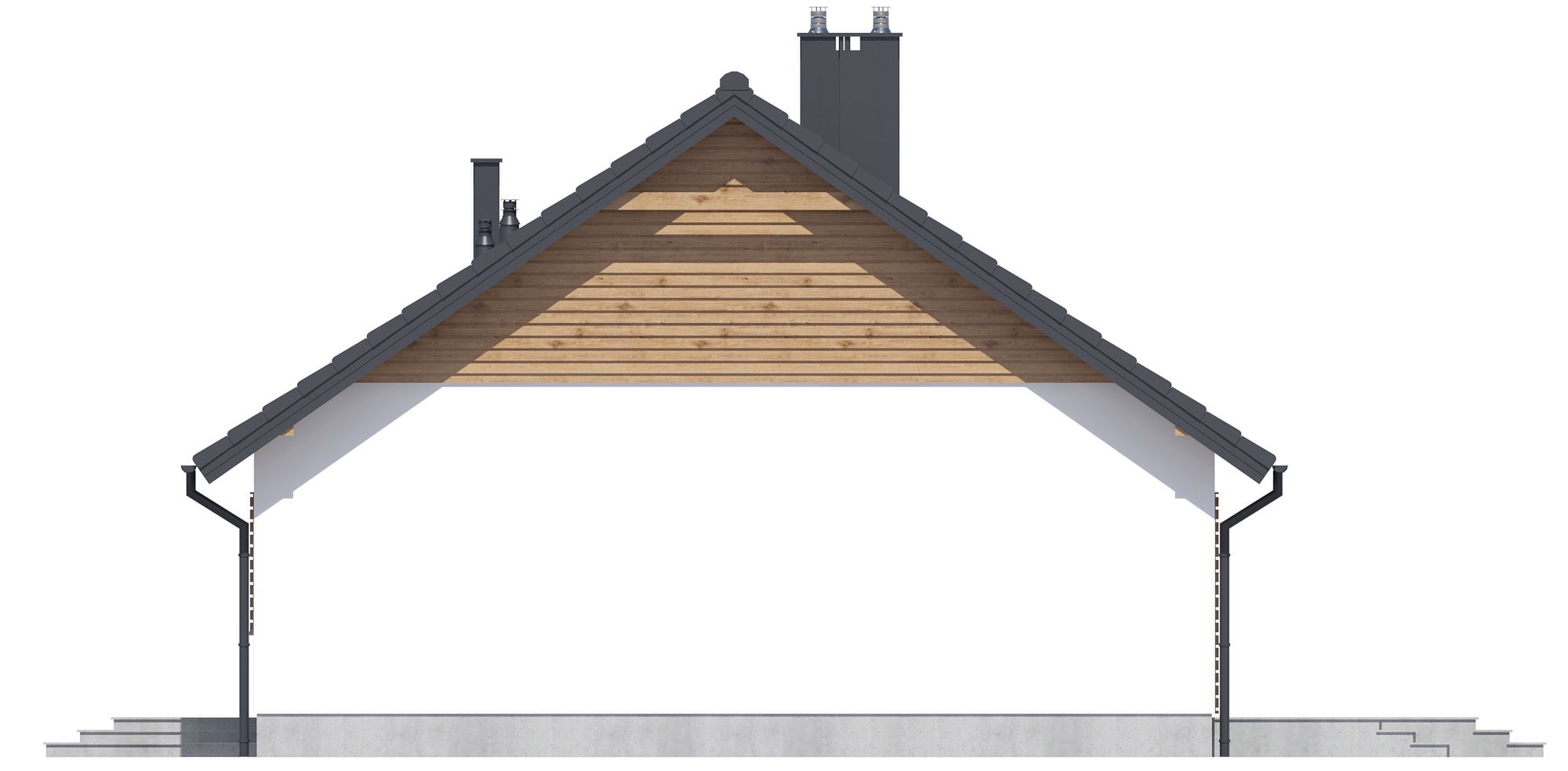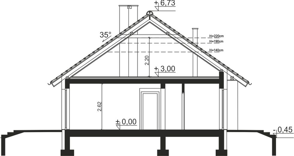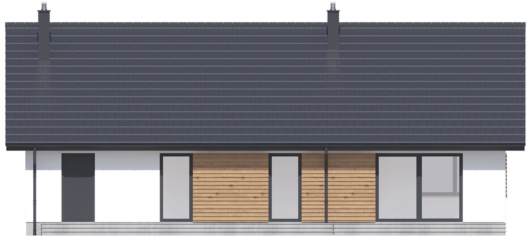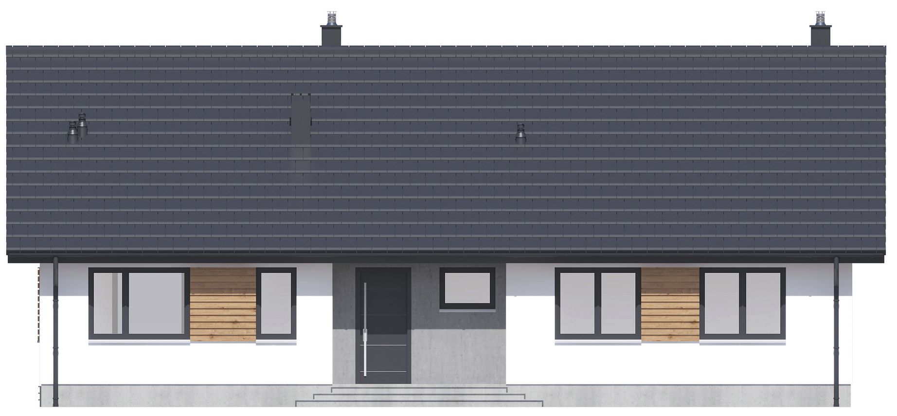 Graficzne opracowanie rzutów poglądowych widocznych na karcie projektu zostało wykonane przez Extradom.pl. Prezentowane przez Extradom.pl wizualizacje wykonane zostały przez autora projektu i należy poczytywać je jedynie za przykład i propozycję wykończenia, wizję architektoniczną autora projektu. Ostateczne wykończenie budynku może nastąpić na wiele sposobów. Szczegółowe rozwiązania zastosowane w oferowanej dokumentacji - w tym również ilość, lokalizacje i wygląd okien, drzwi, kominów - mogą w niewielkim stopniu różnić się od prezentowanej wizualizacji budynku.