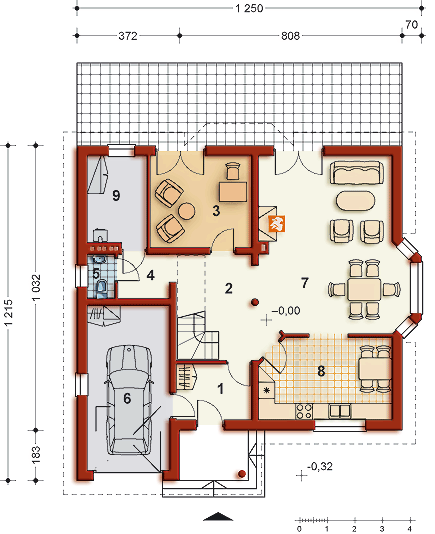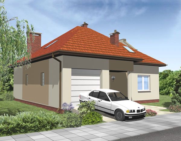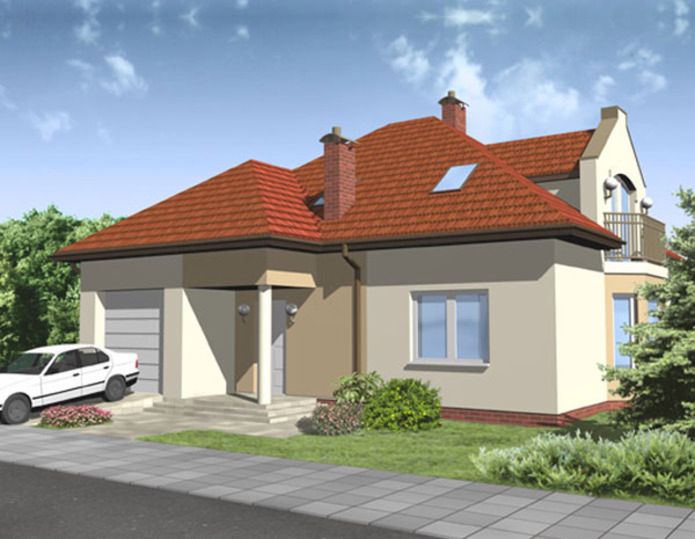 Graficzne opracowanie rzutów poglądowych widocznych na karcie projektu zostało wykonane przez Extradom.pl. Prezentowane przez Extradom.pl wizualizacje wykonane zostały przez autora projektu i należy poczytywać je jedynie za przykład i propozycję wykończenia, wizję architektoniczną autora projektu. Ostateczne wykończenie budynku może nastąpić na wiele sposobów. Szczegółowe rozwiązania zastosowane w oferowanej dokumentacji - w tym również ilość, lokalizacje i wygląd okien, drzwi, kominów - mogą w niewielkim stopniu różnić się od prezentowanej wizualizacji budynku.