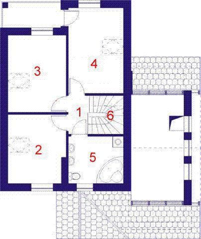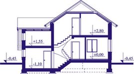 Graficzne opracowanie rzutów poglądowych widocznych na karcie projektu zostało wykonane przez Extradom.pl. Prezentowane przez Extradom.pl wizualizacje wykonane zostały przez autora projektu i należy poczytywać je jedynie za przykład i propozycję wykończenia, wizję architektoniczną autora projektu. Ostateczne wykończenie budynku może nastąpić na wiele sposobów. Szczegółowe rozwiązania zastosowane w oferowanej dokumentacji - w tym również ilość, lokalizacje i wygląd okien, drzwi, kominów - mogą w niewielkim stopniu różnić się od prezentowanej wizualizacji budynku.
