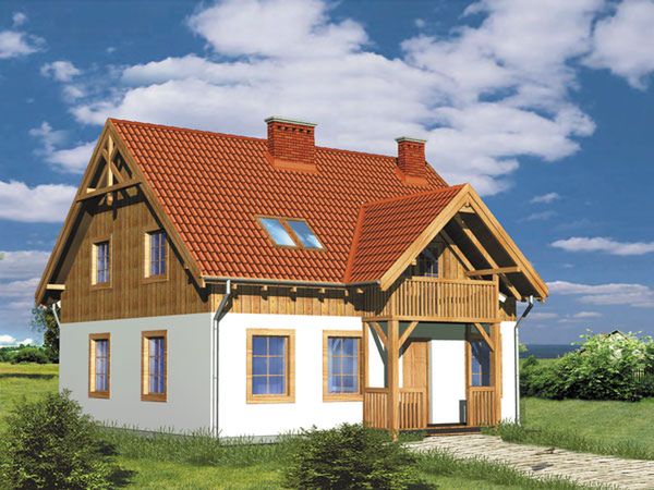 Ściany zewnętrzne: technologia tradycyjna - pustak ceramiczny + izolacja. Pokrycie dachu: dachówka ceramiczna.