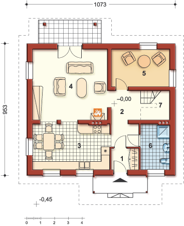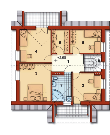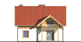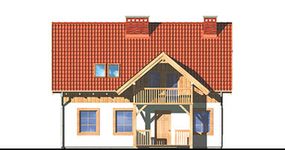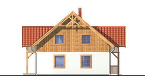 Graficzne opracowanie rzutów poglądowych widocznych na karcie projektu zostało wykonane przez Extradom.pl. Prezentowane przez Extradom.pl wizualizacje wykonane zostały przez autora projektu i należy poczytywać je jedynie za przykład i propozycję wykończenia, wizję architektoniczną autora projektu. Ostateczne wykończenie budynku może nastąpić na wiele sposobów. Szczegółowe rozwiązania zastosowane w oferowanej dokumentacji - w tym również ilość, lokalizacje i wygląd okien, drzwi, kominów - mogą w niewielkim stopniu różnić się od prezentowanej wizualizacji budynku.