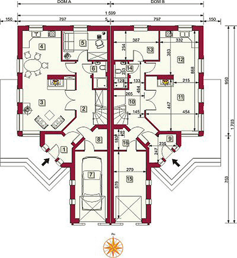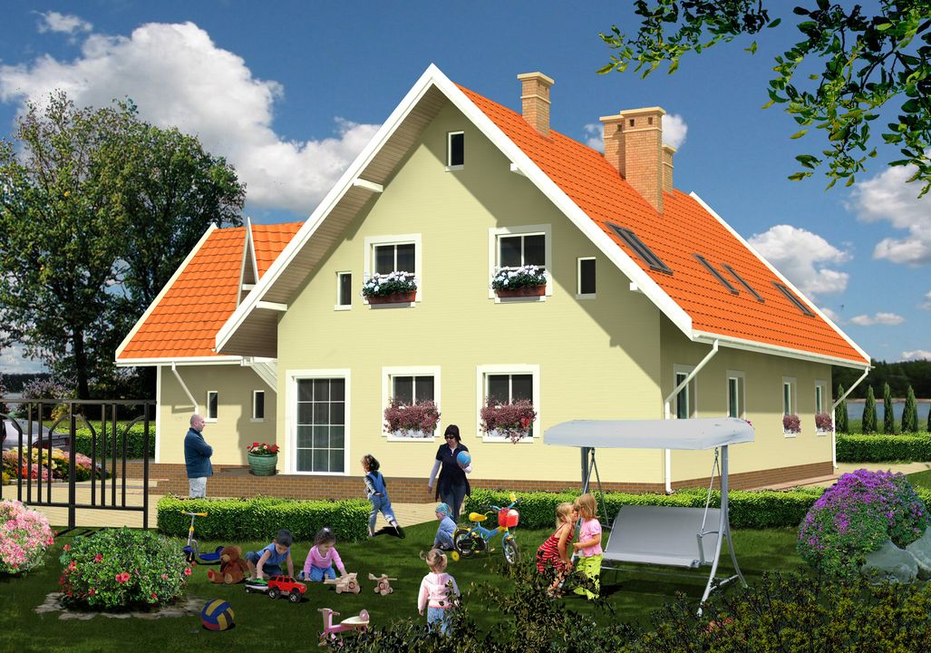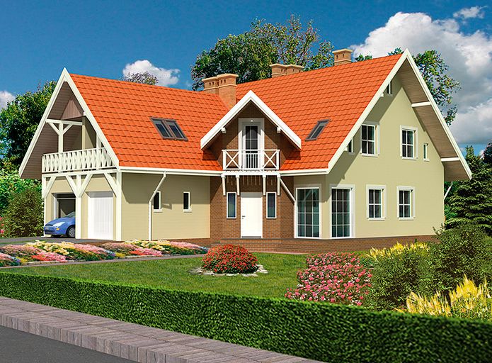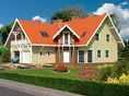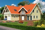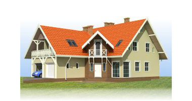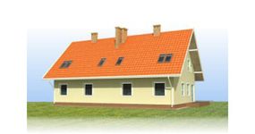 Graficzne opracowanie rzutów poglądowych widocznych na karcie projektu zostało wykonane przez Extradom.pl. Prezentowane przez Extradom.pl wizualizacje wykonane zostały przez autora projektu i należy poczytywać je jedynie za przykład i propozycję wykończenia, wizję architektoniczną autora projektu. Ostateczne wykończenie budynku może nastąpić na wiele sposobów. Szczegółowe rozwiązania zastosowane w oferowanej dokumentacji - w tym również ilość, lokalizacje i wygląd okien, drzwi, kominów - mogą w niewielkim stopniu różnić się od prezentowanej wizualizacji budynku.