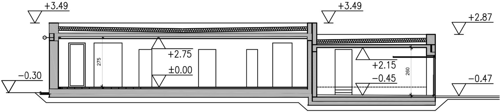 Ławy fundamentowe ze ścianami fundamentowymi: z bloczków betonowych. Ściany zewnętrzne: Ytong gr. 48 cm. Ściany wewnętrzne: g-k gr. 12 cm. Dach: membrana odporna na UV, wełna mineralne gr. 20 cm. Strop: żelbetowy. elewacje: tynk akrylowy na fragmentach płyty włóknowo - cementowe gr. 0,8 cm.