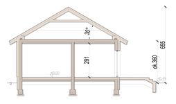 Fundamenty żelbetowe. Ściany nośne i działowe z pustaków ceramicznych. Strop drewniany. Konstrukcja dachu drewniana. Pokrycie dachu dachówką betonową lub ceramiczną