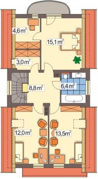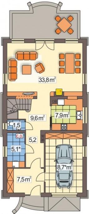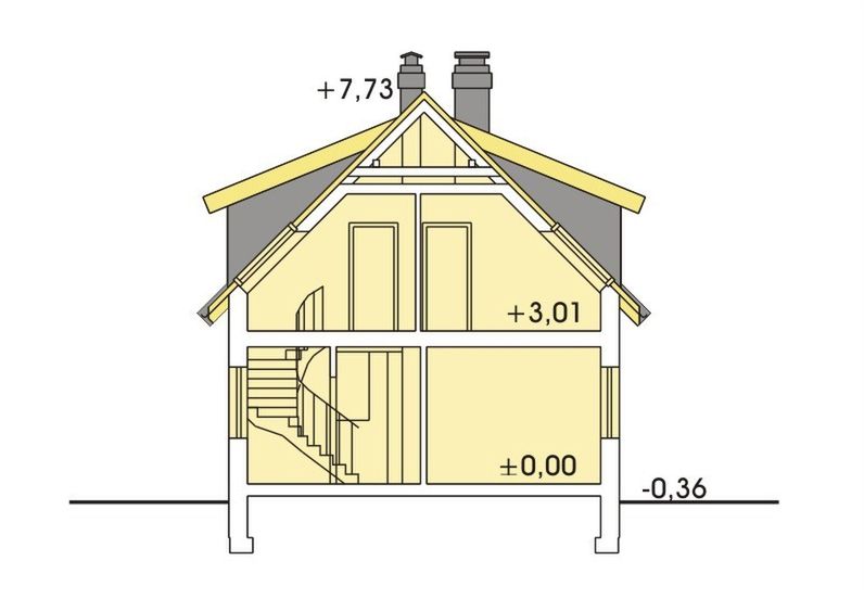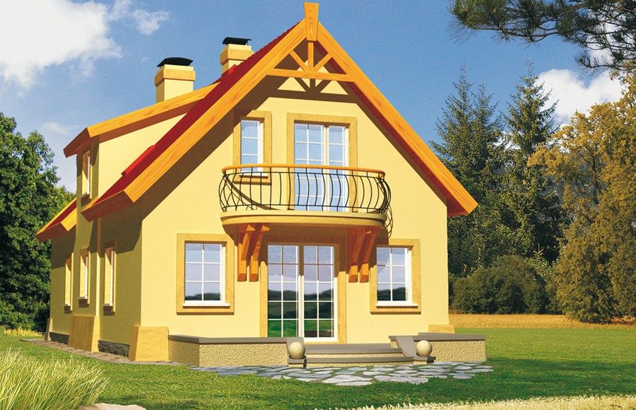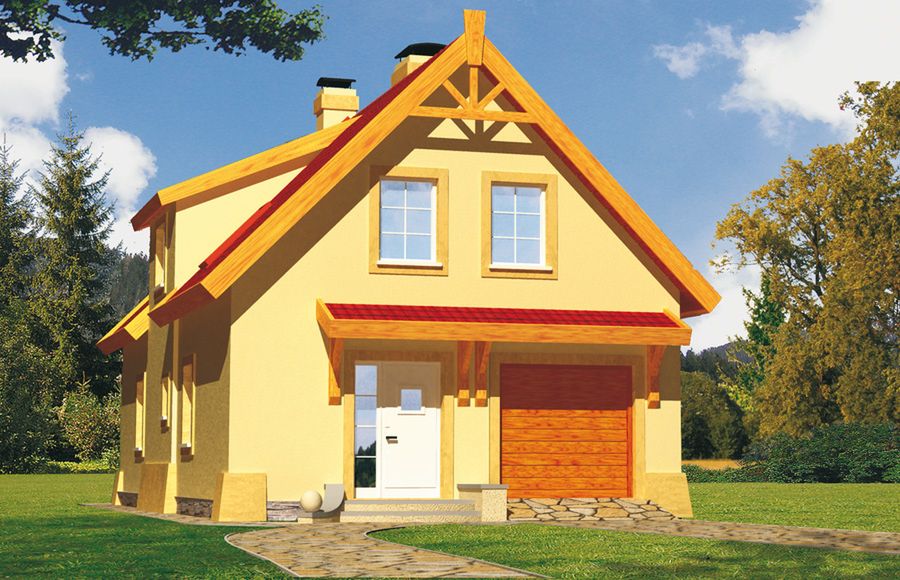 Graficzne opracowanie rzutów poglądowych widocznych na karcie projektu zostało wykonane przez Extradom.pl. Prezentowane przez Extradom.pl wizualizacje wykonane zostały przez autora projektu i należy poczytywać je jedynie za przykład i propozycję wykończenia, wizję architektoniczną autora projektu. Ostateczne wykończenie budynku może nastąpić na wiele sposobów. Szczegółowe rozwiązania zastosowane w oferowanej dokumentacji - w tym również ilość, lokalizacje i wygląd okien, drzwi, kominów - mogą w niewielkim stopniu różnić się od prezentowanej wizualizacji budynku.