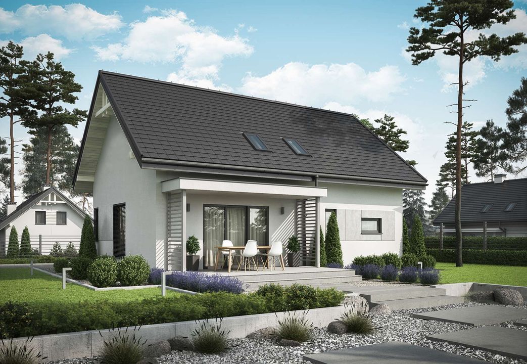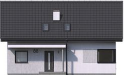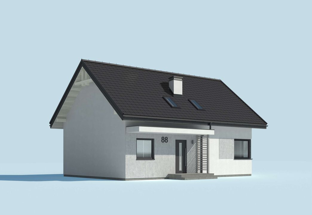 Graficzne opracowanie rzutów poglądowych widocznych na karcie projektu zostało wykonane przez Extradom.pl. Prezentowane przez Extradom.pl wizualizacje wykonane zostały przez autora projektu i należy poczytywać je jedynie za przykład i propozycję wykończenia, wizję architektoniczną autora projektu. Ostateczne wykończenie budynku może nastąpić na wiele sposobów. Szczegółowe rozwiązania zastosowane w oferowanej dokumentacji - w tym również ilość, lokalizacje i wygląd okien, drzwi, kominów - mogą w niewielkim stopniu różnić się od prezentowanej wizualizacji budynku.