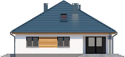 Graficzne opracowanie rzutów poglądowych widocznych na karcie projektu zostało wykonane przez Extradom.pl. Prezentowane przez Extradom.pl wizualizacje wykonane zostały przez autora projektu i należy poczytywać je jedynie za przykład i propozycję wykończenia, wizję architektoniczną autora projektu. Ostateczne wykończenie budynku może nastąpić na wiele sposobów. Szczegółowe rozwiązania zastosowane w oferowanej dokumentacji - w tym również ilość, lokalizacje i wygląd okien, drzwi, kominów - mogą w niewielkim stopniu różnić się od prezentowanej wizualizacji budynku.