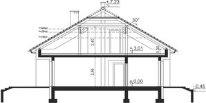 Graficzne opracowanie rzutów poglądowych widocznych na karcie projektu zostało wykonane przez Extradom.pl. Prezentowane przez Extradom.pl wizualizacje wykonane zostały przez autora projektu i należy poczytywać je jedynie za przykład i propozycję wykończenia, wizję architektoniczną autora projektu. Ostateczne wykończenie budynku może nastąpić na wiele sposobów. Szczegółowe rozwiązania zastosowane w oferowanej dokumentacji - w tym również ilość, lokalizacje i wygląd okien, drzwi, kominów - mogą w niewielkim stopniu różnić się od prezentowanej wizualizacji budynku.