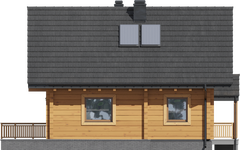 Wysokość ścianki kolankowej: 0.95 m. Ilość drewna na więźbę: 6.16 m³. Strop: drewniany. Pokrycie dachu: dachówka gontopodobna Gerard Corona. Ściany zewnętrzne: płazy drewniane + wełna mineralna + deska. Ściany wewnętrzne: płazy drewniane. Instalacje dodatkowe: instalacja solarna. Inne: okno połaciowe Velux. Ogrzewanie: elektryczne + kominek z nadmuchowym rozprowadzeniem ciepła. Parter: łazienka (podłogowe - maty elektryczne + grzejnik drabinkowy - elektryczny), aneks kuchenny (podłogowe - maty elektryczne). Pozostałe pomieszczenia: grzejniki elektryczne. Poddasze: łazienka (podłogowe -maty elektryczne + grzejnik drabinkowy - elektryczny). Pozostałe pomieszczenia: grzejniki elektryczne. Kuchenka elektryczna. C.W.U. - kolektory słoneczne.