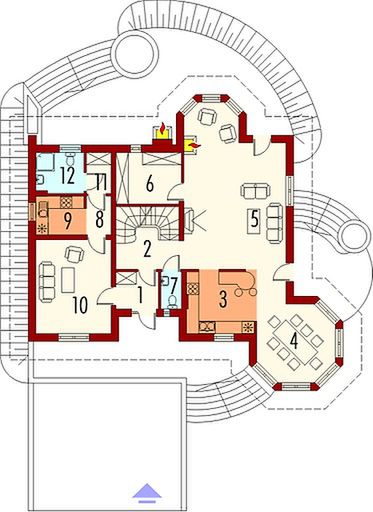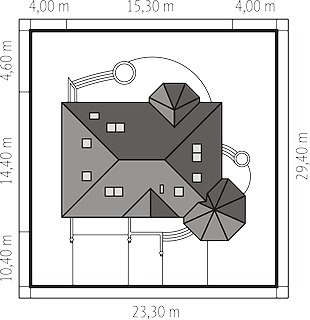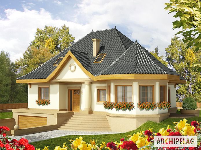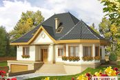 Graficzne opracowanie rzutów poglądowych widocznych na karcie projektu zostało wykonane przez Extradom.pl. Prezentowane przez Extradom.pl wizualizacje wykonane zostały przez autora projektu i należy poczytywać je jedynie za przykład i propozycję wykończenia, wizję architektoniczną autora projektu. Ostateczne wykończenie budynku może nastąpić na wiele sposobów. Szczegółowe rozwiązania zastosowane w oferowanej dokumentacji - w tym również ilość, lokalizacje i wygląd okien, drzwi, kominów - mogą w niewielkim stopniu różnić się od prezentowanej wizualizacji budynku.