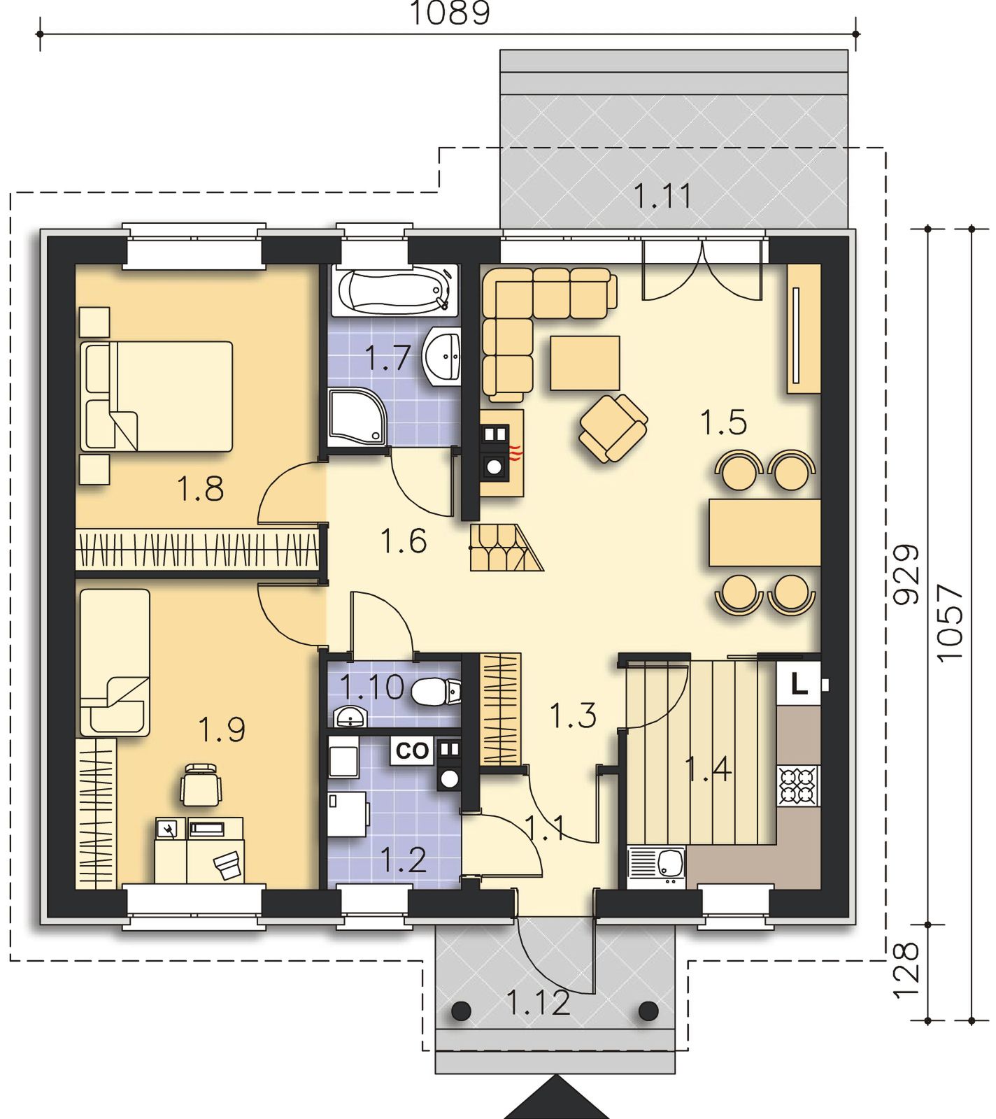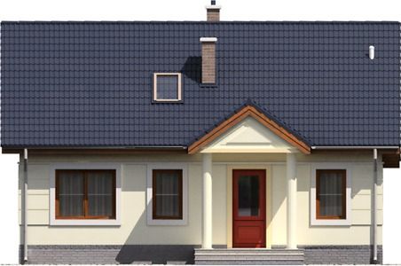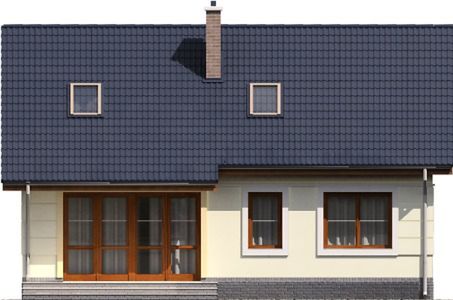 Graficzne opracowanie rzutów poglądowych widocznych na karcie projektu zostało wykonane przez Extradom.pl. Prezentowane przez Extradom.pl wizualizacje wykonane zostały przez autora projektu i należy poczytywać je jedynie za przykład i propozycję wykończenia, wizję architektoniczną autora projektu. Ostateczne wykończenie budynku może nastąpić na wiele sposobów. Szczegółowe rozwiązania zastosowane w oferowanej dokumentacji - w tym również ilość, lokalizacje i wygląd okien, drzwi, kominów - mogą w niewielkim stopniu różnić się od prezentowanej wizualizacji budynku.