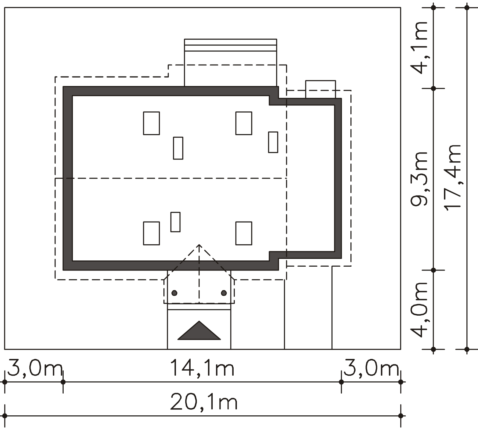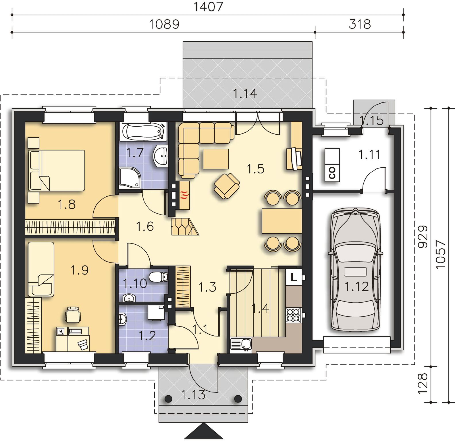 Ze względu na dostosowanie projektu do aktualnych norm wymiary budynku mogą ulec zmianie.