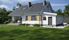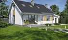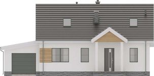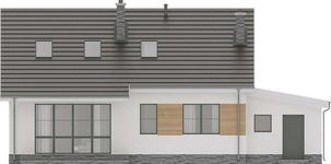 Graficzne opracowanie rzutów poglądowych widocznych na karcie projektu zostało wykonane przez Extradom.pl. Prezentowane przez Extradom.pl wizualizacje wykonane zostały przez autora projektu i należy poczytywać je jedynie za przykład i propozycję wykończenia, wizję architektoniczną autora projektu. Ostateczne wykończenie budynku może nastąpić na wiele sposobów. Szczegółowe rozwiązania zastosowane w oferowanej dokumentacji - w tym również ilość, lokalizacje i wygląd okien, drzwi, kominów - mogą w niewielkim stopniu różnić się od prezentowanej wizualizacji budynku.