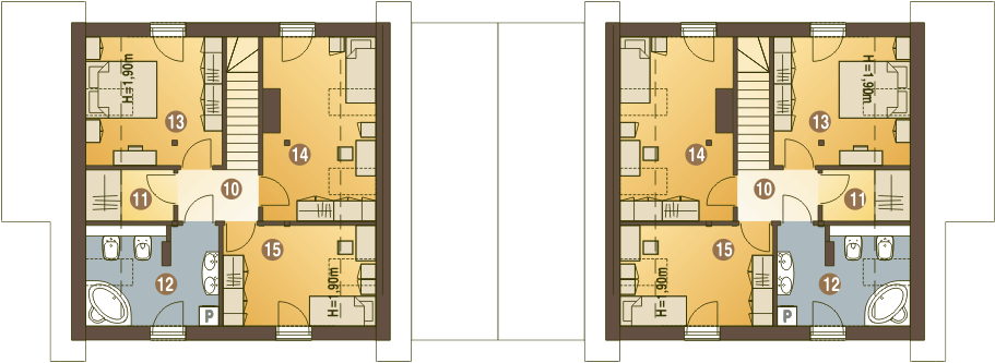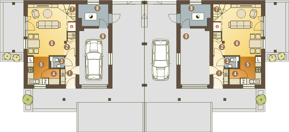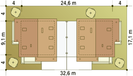 Budynek dwulokalowy posadowiony na wspólnym fundamencie. Jeśli planujesz budowę na osobnych działkach zamów pojedyncze segmenty: podstawa + lustro.