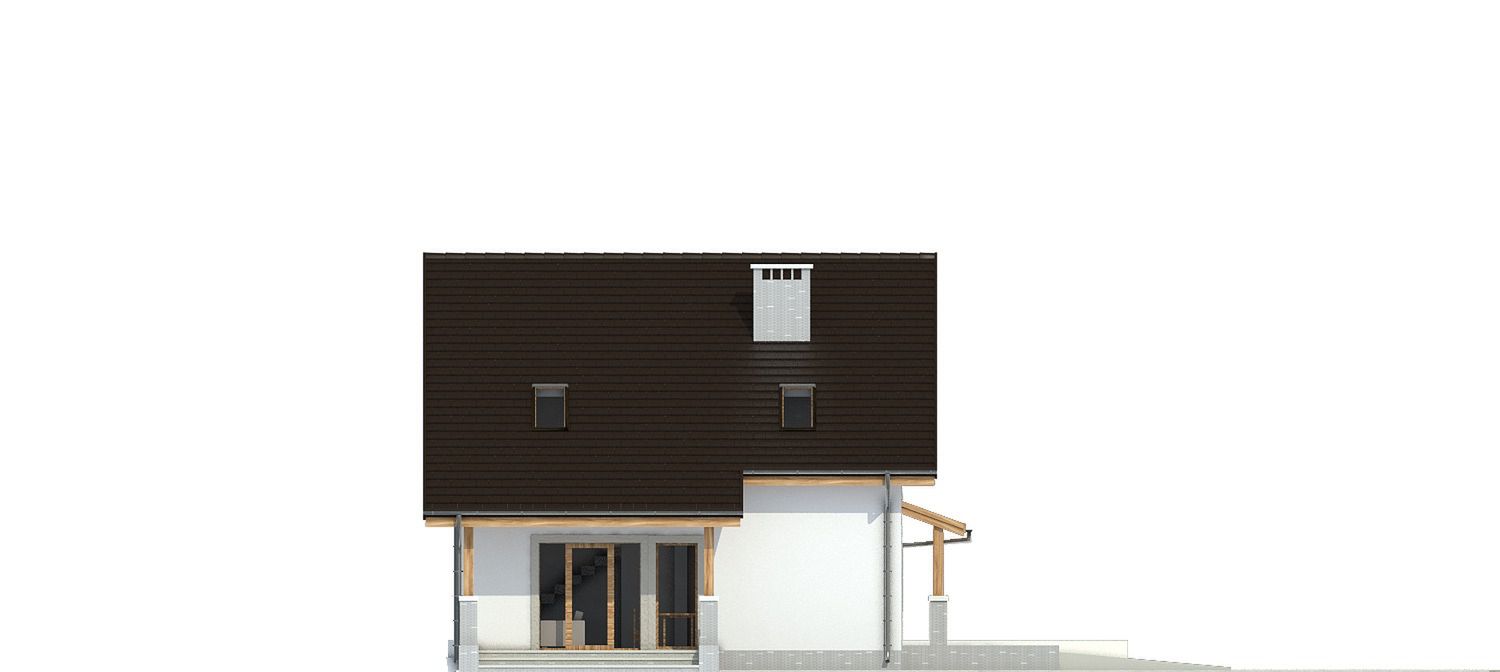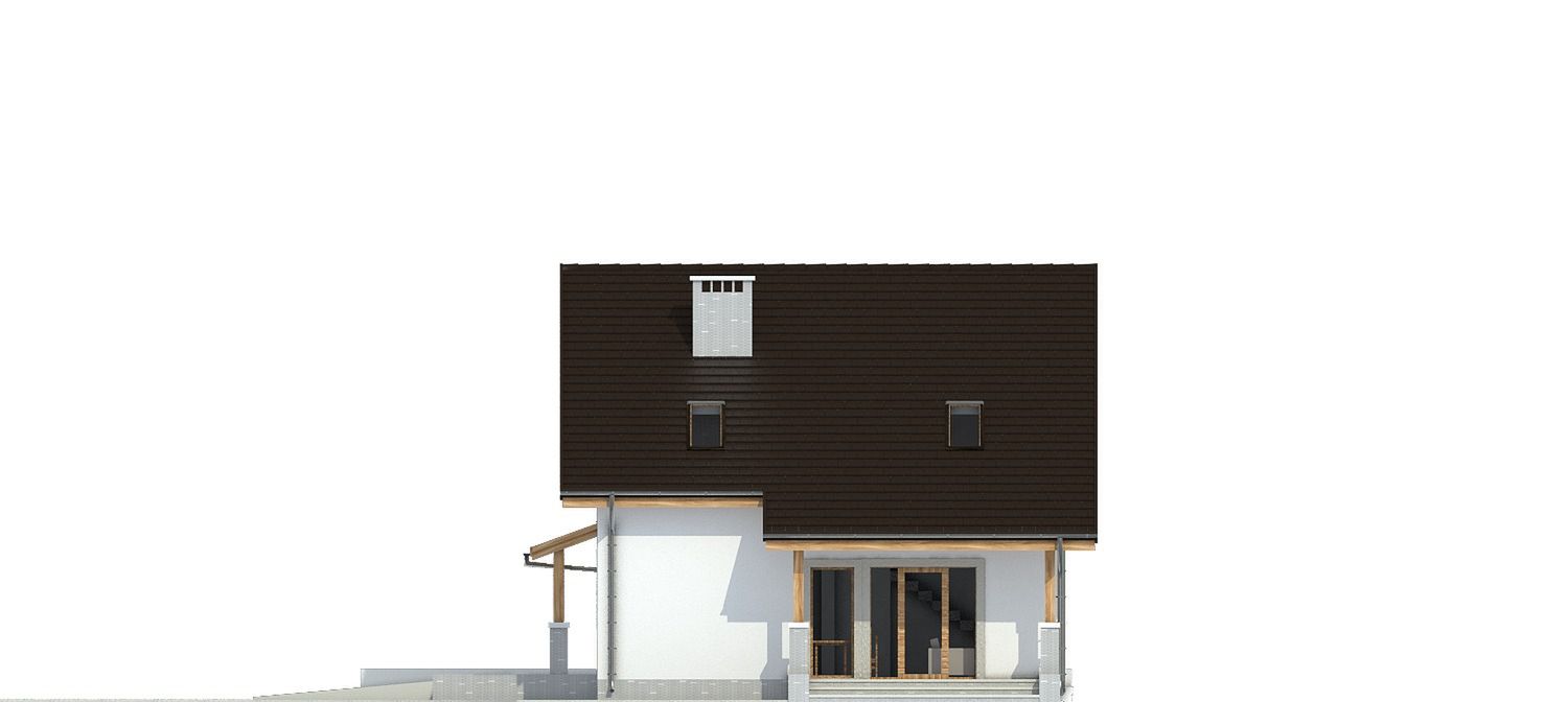 Graficzne opracowanie rzutów poglądowych widocznych na karcie projektu zostało wykonane przez Extradom.pl. Prezentowane przez Extradom.pl wizualizacje wykonane zostały przez autora projektu i należy poczytywać je jedynie za przykład i propozycję wykończenia, wizję architektoniczną autora projektu. Ostateczne wykończenie budynku może nastąpić na wiele sposobów. Szczegółowe rozwiązania zastosowane w oferowanej dokumentacji - w tym również ilość, lokalizacje i wygląd okien, drzwi, kominów - mogą w niewielkim stopniu różnić się od prezentowanej wizualizacji budynku.