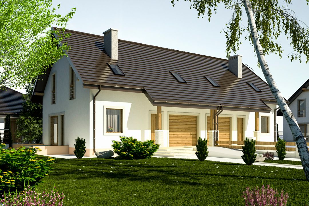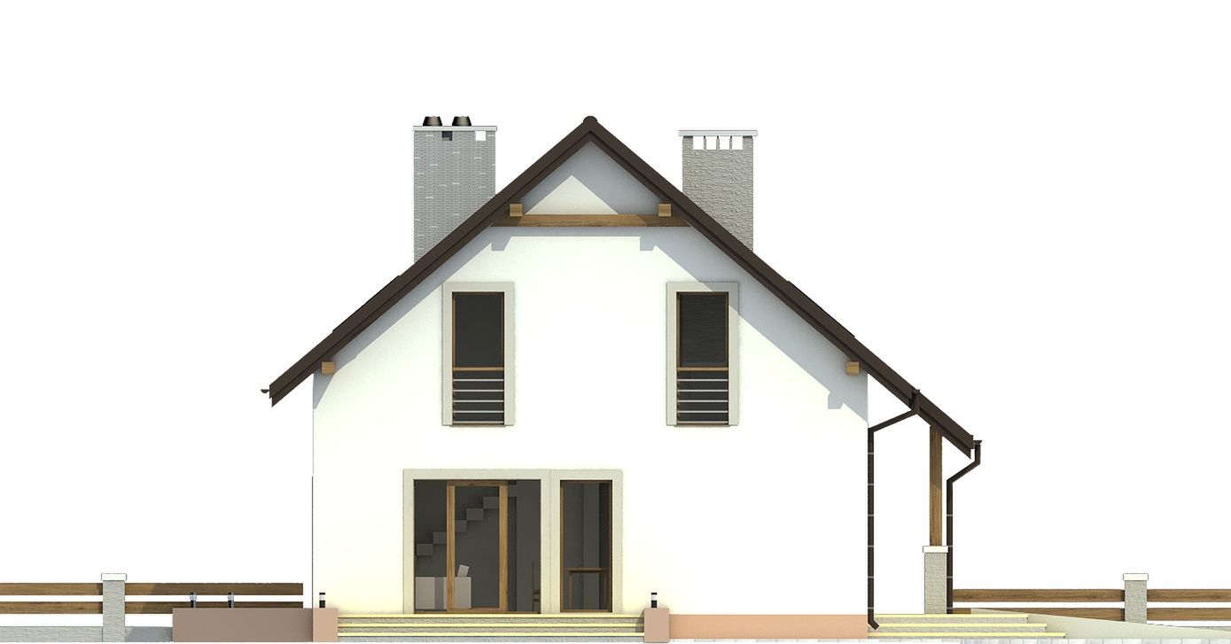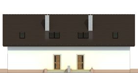 Graficzne opracowanie rzutów poglądowych widocznych na karcie projektu zostało wykonane przez Extradom.pl. Prezentowane przez Extradom.pl wizualizacje wykonane zostały przez autora projektu i należy poczytywać je jedynie za przykład i propozycję wykończenia, wizję architektoniczną autora projektu. Ostateczne wykończenie budynku może nastąpić na wiele sposobów. Szczegółowe rozwiązania zastosowane w oferowanej dokumentacji - w tym również ilość, lokalizacje i wygląd okien, drzwi, kominów - mogą w niewielkim stopniu różnić się od prezentowanej wizualizacji budynku.