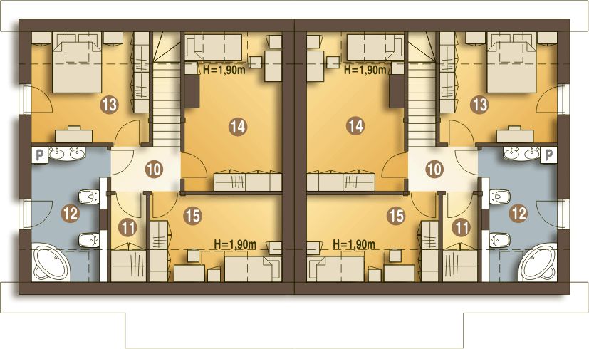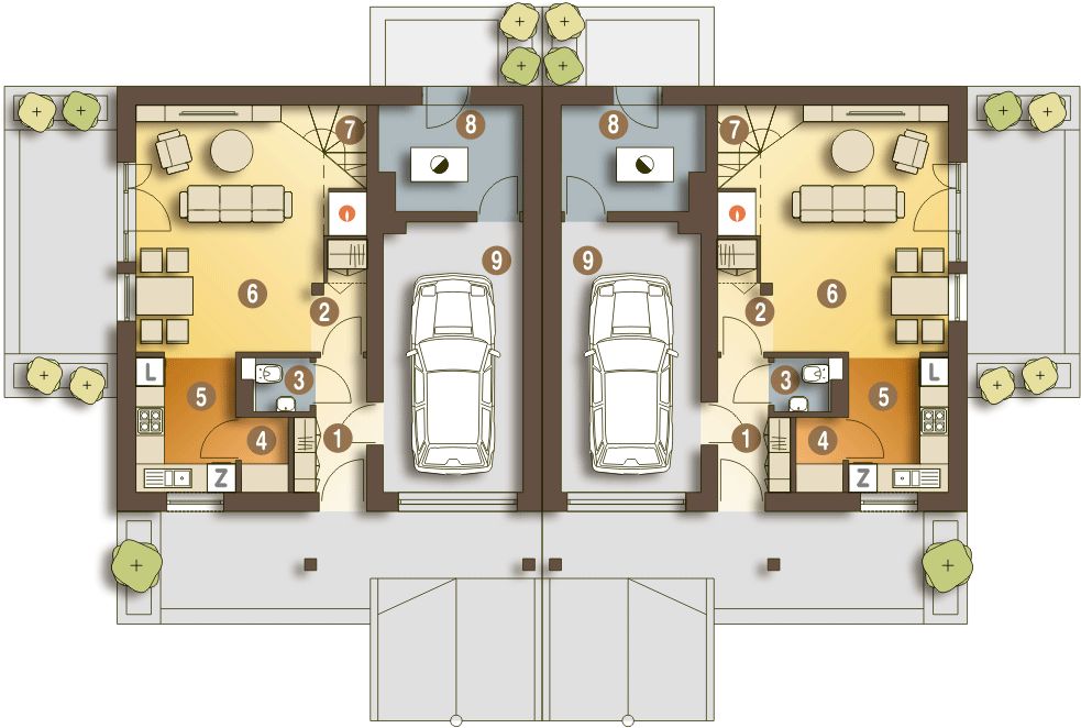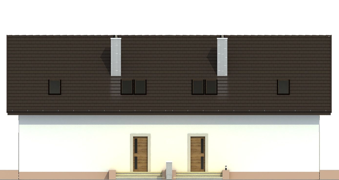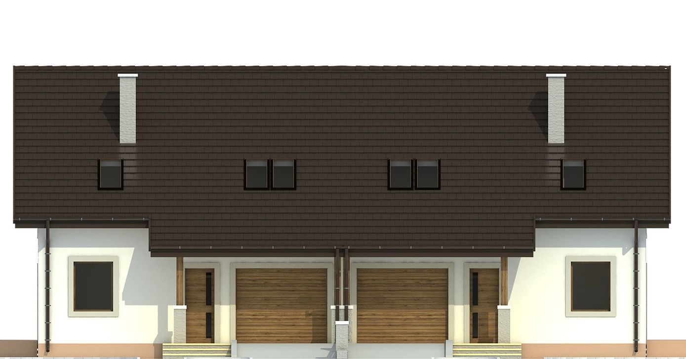 Budynek dwulokalowy posadowiony na wspólnym fundamencie. Jeśli planujesz budowę na osobnych działkach zamów pojedyncze segmenty: podstawa + lustro.