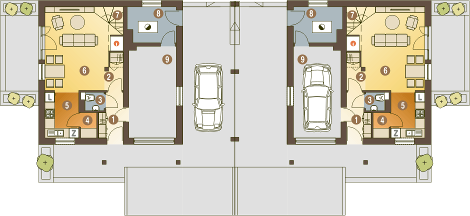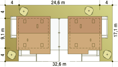Budynek dwulokalowy posadowiony na wspólnym fundamencie. Jeśli planujesz budowę na osobnych działkach zamów pojedyncze segmenty: podstawa + lustro. Projekt jest w fazie koncepcji. Przy zakupie projektu należy zapłacić 35% zaliczki. Zaliczka jest bezzwrotna w przypadku zwrotu lub rezygnacji z zamówienia. Ze względu na dostosowanie projektu do aktualnych norm wymiary budynku mogą ulec zmianie.