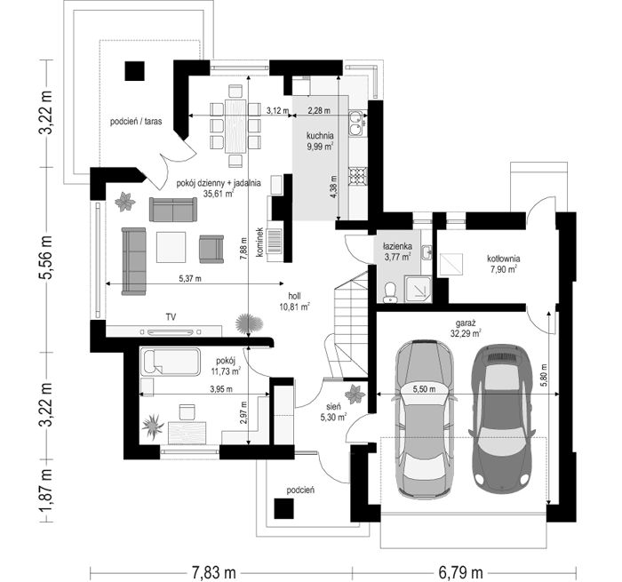 PROJEKT Z BUDOWĄ Istnieje możliwość zaadaptowania tego projektu do technologii prefabrykowanej/modułowej i budowy nawet w 6 miesięcy ze stałym kosztem budowy