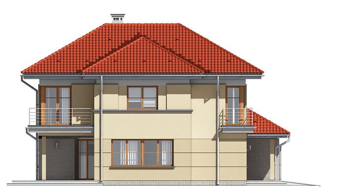 Graficzne opracowanie rzutów poglądowych widocznych na karcie projektu zostało wykonane przez Extradom.pl. Prezentowane przez Extradom.pl wizualizacje wykonane zostały przez autora projektu i należy poczytywać je jedynie za przykład i propozycję wykończenia, wizję architektoniczną autora projektu. Ostateczne wykończenie budynku może nastąpić na wiele sposobów. Szczegółowe rozwiązania zastosowane w oferowanej dokumentacji - w tym również ilość, lokalizacje i wygląd okien, drzwi, kominów - mogą w niewielkim stopniu różnić się od prezentowanej wizualizacji budynku.