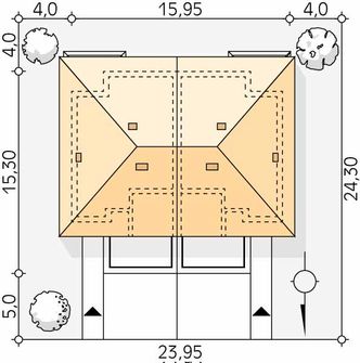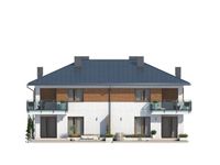 Graficzne opracowanie rzutów poglądowych widocznych na karcie projektu zostało wykonane przez Extradom.pl. Prezentowane przez Extradom.pl wizualizacje wykonane zostały przez autora projektu i należy poczytywać je jedynie za przykład i propozycję wykończenia, wizję architektoniczną autora projektu. Ostateczne wykończenie budynku może nastąpić na wiele sposobów. Szczegółowe rozwiązania zastosowane w oferowanej dokumentacji - w tym również ilość, lokalizacje i wygląd okien, drzwi, kominów - mogą w niewielkim stopniu różnić się od prezentowanej wizualizacji budynku.