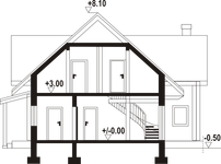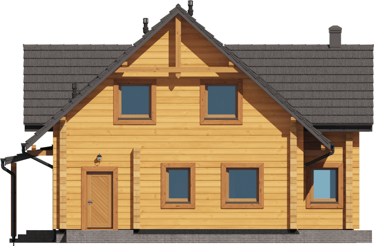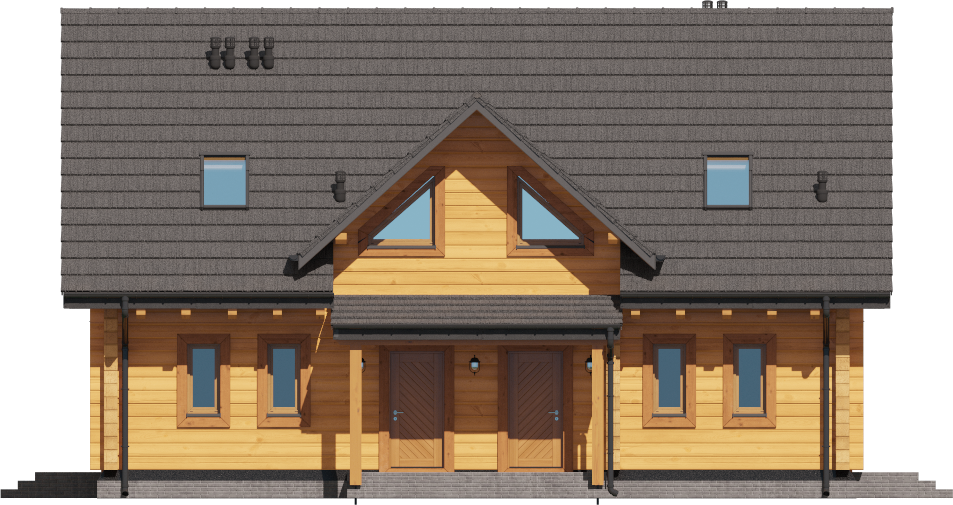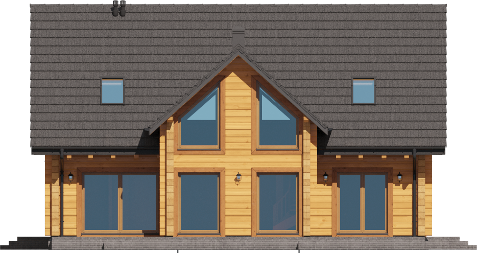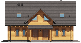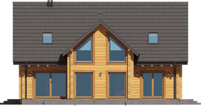 Graficzne opracowanie rzutów poglądowych widocznych na karcie projektu zostało wykonane przez Extradom.pl. Prezentowane przez Extradom.pl wizualizacje wykonane zostały przez autora projektu i należy poczytywać je jedynie za przykład i propozycję wykończenia, wizję architektoniczną autora projektu. Ostateczne wykończenie budynku może nastąpić na wiele sposobów. Szczegółowe rozwiązania zastosowane w oferowanej dokumentacji - w tym również ilość, lokalizacje i wygląd okien, drzwi, kominów - mogą w niewielkim stopniu różnić się od prezentowanej wizualizacji budynku.