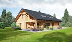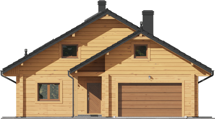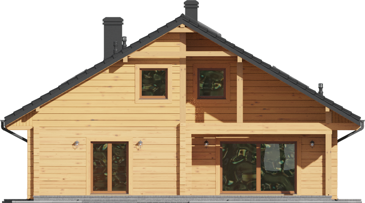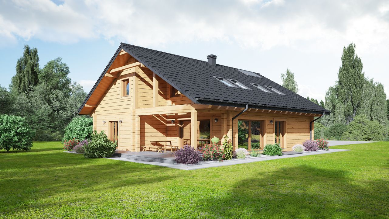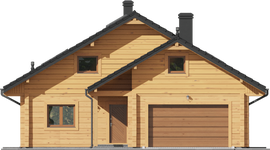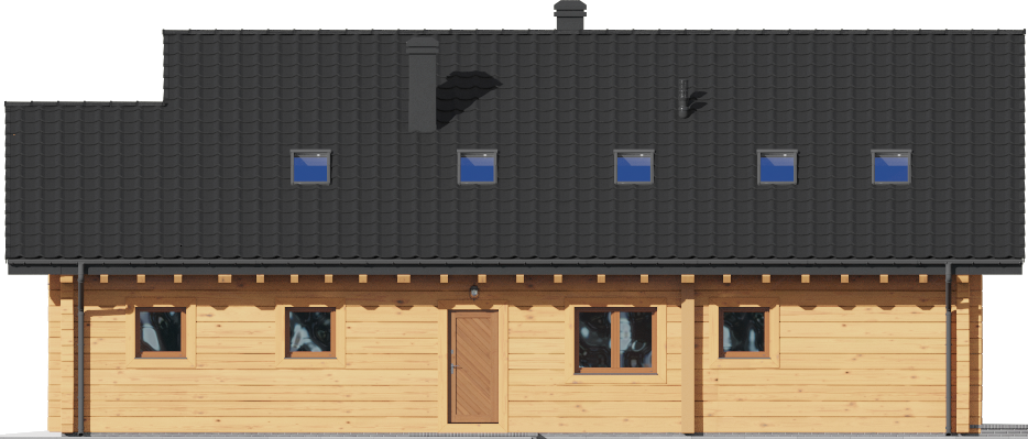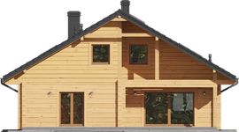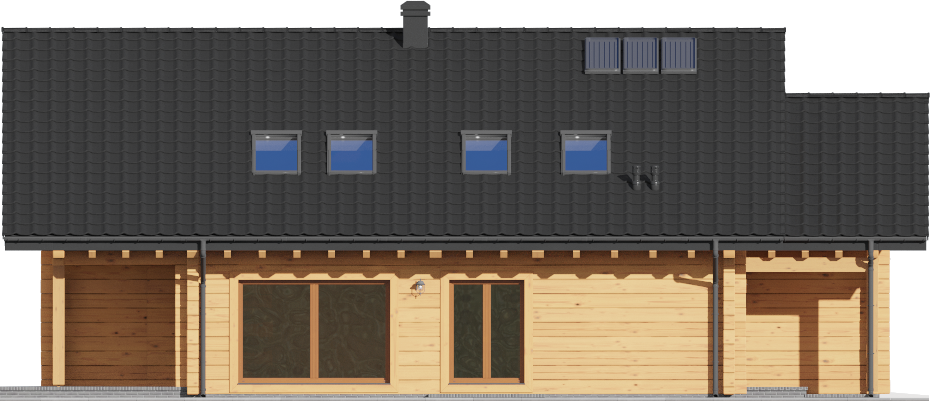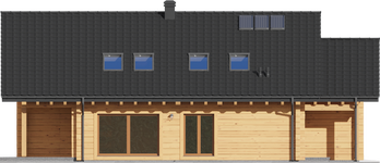 Wysokość ścianki kolankowej: 0.6 m. Strop: drewniany. Pokrycie dachu: dachówka gontopodobna Gerard Diamant. Ściany zewnętrzne: płazy drewniane + wełna mineralna + deska. Ściany wewnętrzne: płazy drewniane. Typ ogrzewania: kocioł gazowy lub kocioł na paliwo stałe. Instalacje dodatkowe: instalacja solarna. Inne: okna połaciowe Fakro.