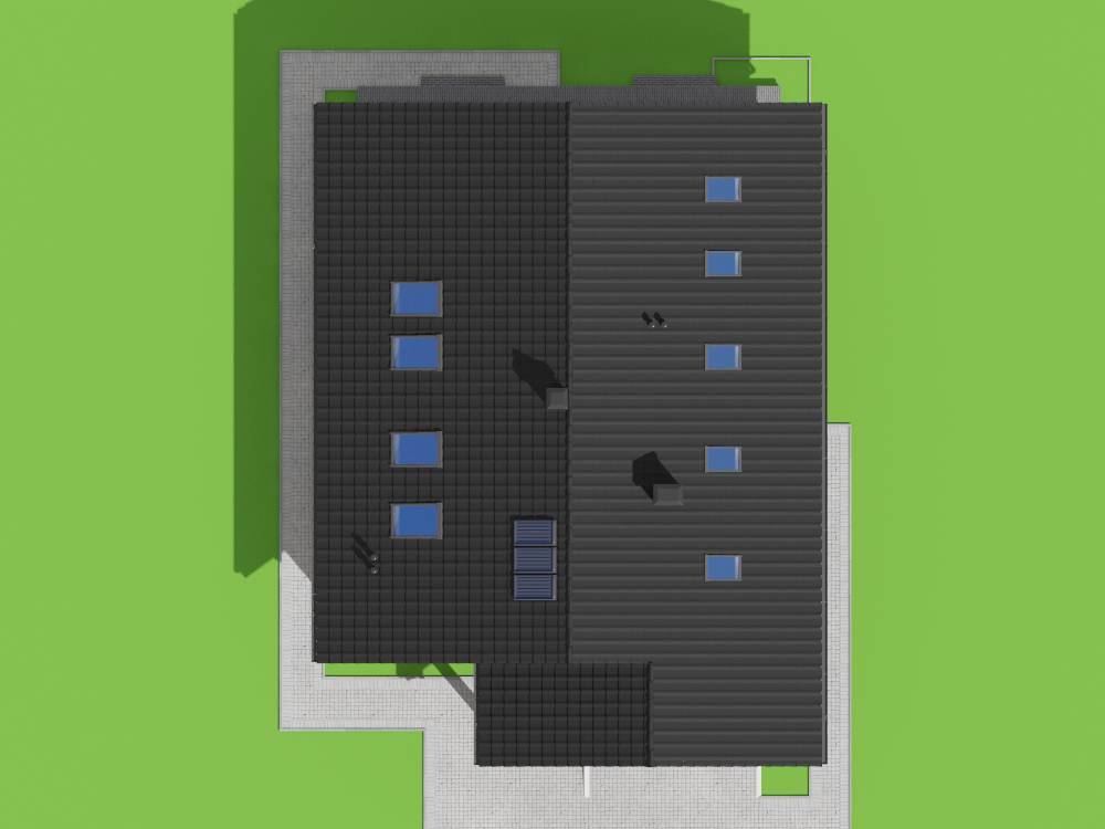 Graficzne opracowanie rzutów poglądowych widocznych na karcie projektu zostało wykonane przez Extradom.pl. Prezentowane przez Extradom.pl wizualizacje wykonane zostały przez autora projektu i należy poczytywać je jedynie za przykład i propozycję wykończenia, wizję architektoniczną autora projektu. Ostateczne wykończenie budynku może nastąpić na wiele sposobów. Szczegółowe rozwiązania zastosowane w oferowanej dokumentacji - w tym również ilość, lokalizacje i wygląd okien, drzwi, kominów - mogą w niewielkim stopniu różnić się od prezentowanej wizualizacji budynku.