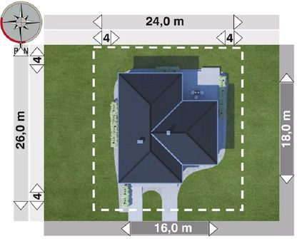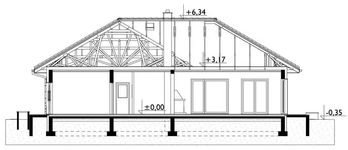 Graficzne opracowanie rzutów poglądowych widocznych na karcie projektu zostało wykonane przez Extradom.pl. Prezentowane przez Extradom.pl wizualizacje wykonane zostały przez autora projektu i należy poczytywać je jedynie za przykład i propozycję wykończenia, wizję architektoniczną autora projektu. Ostateczne wykończenie budynku może nastąpić na wiele sposobów. Szczegółowe rozwiązania zastosowane w oferowanej dokumentacji - w tym również ilość, lokalizacje i wygląd okien, drzwi, kominów - mogą w niewielkim stopniu różnić się od prezentowanej wizualizacji budynku.