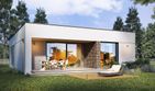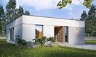 Materiały, z jakich zaprojektowany jest ten nowoczesny dom parterowy z płaskim dachem, to bloczki gazobetonowe na ściany, styropian na docieplenie elewacji, popularny strop gęstożebrowy, płyty z twardej wełny mineralnej jako izolacja termiczna dachu płaskiego i pokrycie z membrany PCV. Projekt gotowy dostępny jest w wariancie z ogrzewaniem podłogowym zasilonym przez pompę ciepła powietrze-woda, albo z tradycyjnymi grzejnikami płytowymi i piecem gazowym.