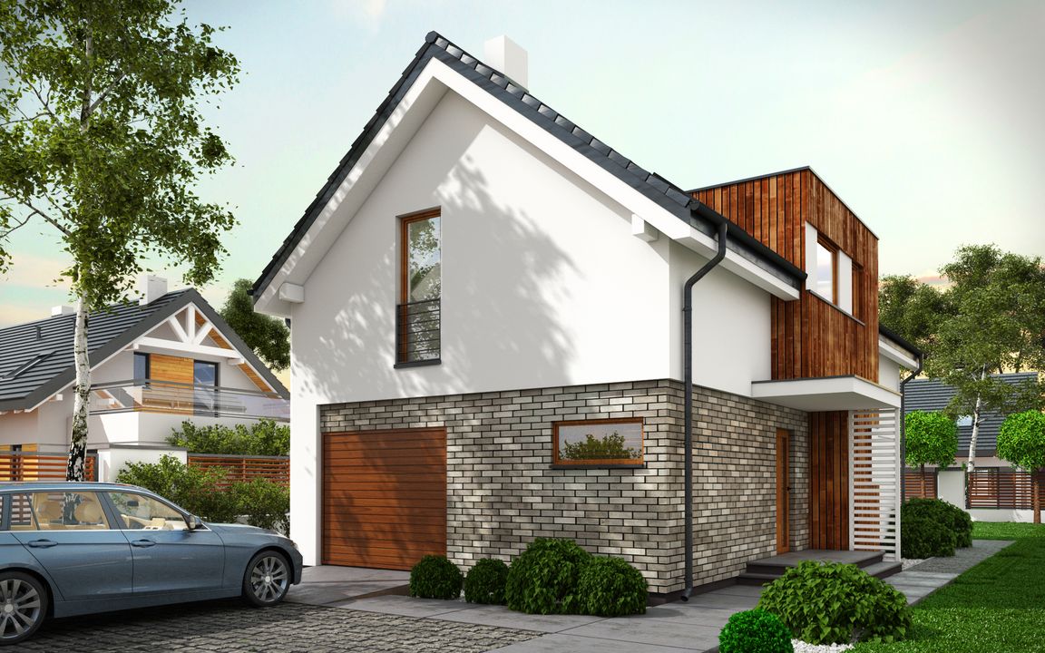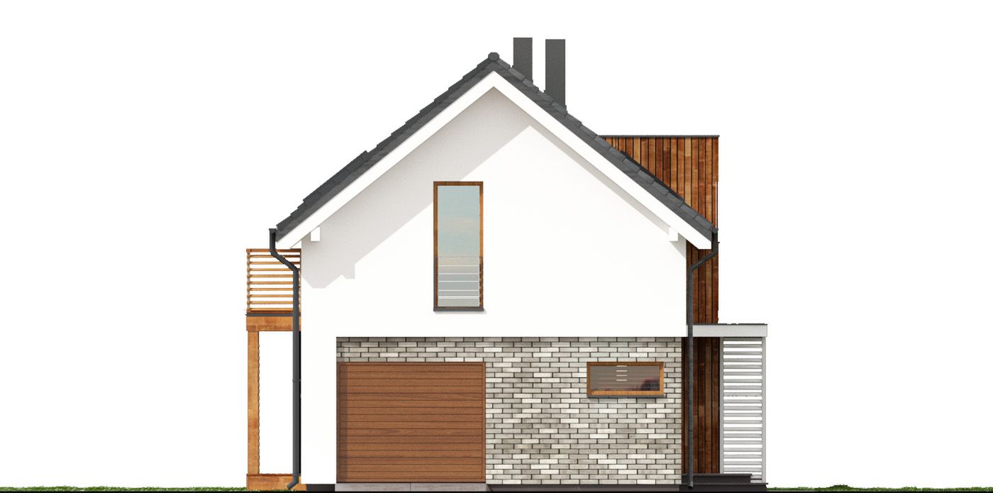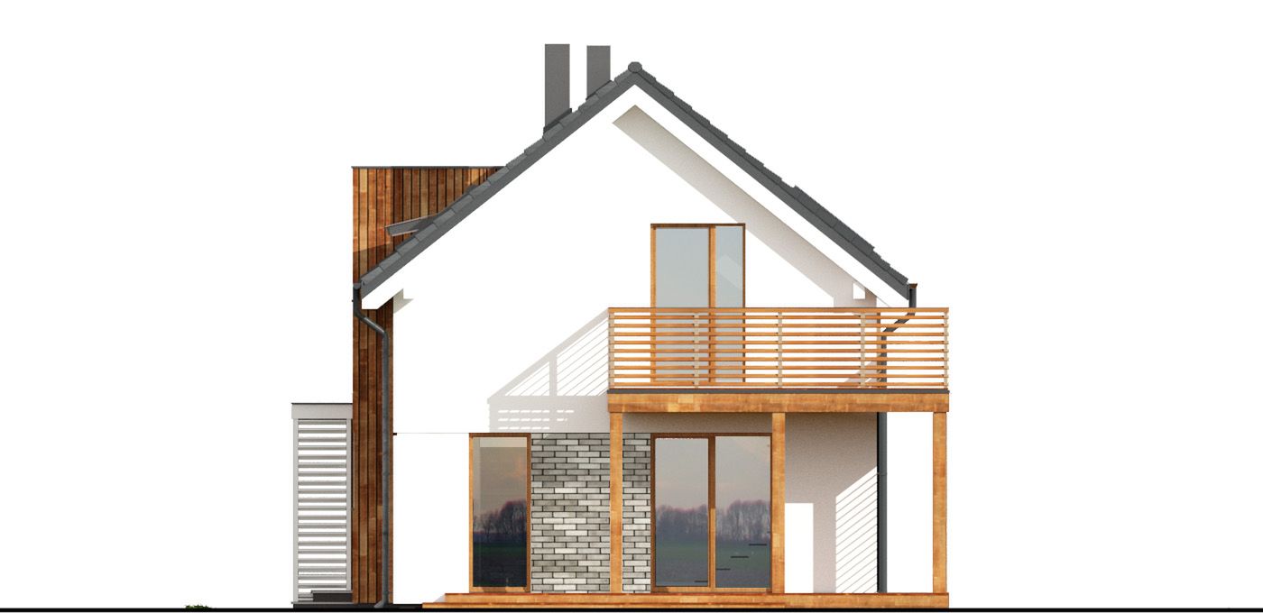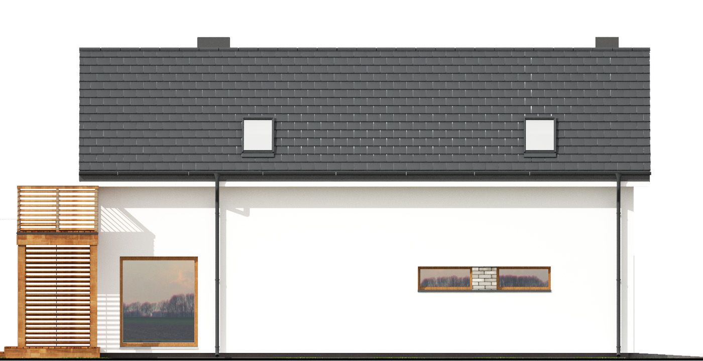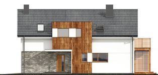 Graficzne opracowanie rzutów poglądowych widocznych na karcie projektu zostało wykonane przez Extradom.pl. Prezentowane przez Extradom.pl wizualizacje wykonane zostały przez autora projektu i należy poczytywać je jedynie za przykład i propozycję wykończenia, wizję architektoniczną autora projektu. Ostateczne wykończenie budynku może nastąpić na wiele sposobów. Szczegółowe rozwiązania zastosowane w oferowanej dokumentacji - w tym również ilość, lokalizacje i wygląd okien, drzwi, kominów - mogą w niewielkim stopniu różnić się od prezentowanej wizualizacji budynku.
