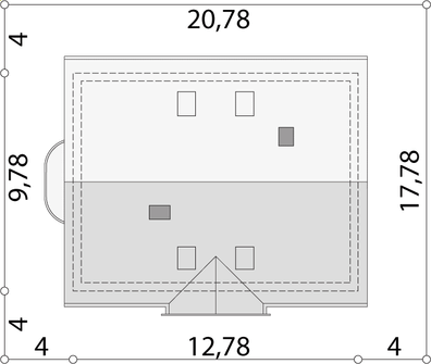 Graficzne opracowanie rzutów poglądowych widocznych na karcie projektu zostało wykonane przez Extradom.pl. Prezentowane przez Extradom.pl wizualizacje wykonane zostały przez autora projektu i należy poczytywać je jedynie za przykład i propozycję wykończenia, wizję architektoniczną autora projektu. Ostateczne wykończenie budynku może nastąpić na wiele sposobów. Szczegółowe rozwiązania zastosowane w oferowanej dokumentacji - w tym również ilość, lokalizacje i wygląd okien, drzwi, kominów - mogą w niewielkim stopniu różnić się od prezentowanej wizualizacji budynku.
