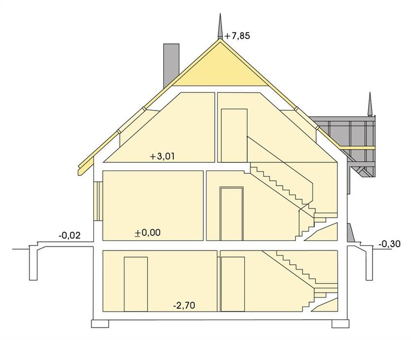 Strop: gęstożebrowy Teriva I. Ściany zewnętrzne: gazobeton 24cm + styropian Termonium Fasada 20cm. Pokrycie dachowe: dachówka ceramiczna. Ogrzewanie: gaz / paliwo stałe.