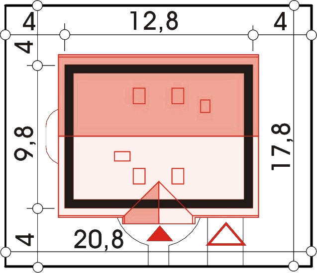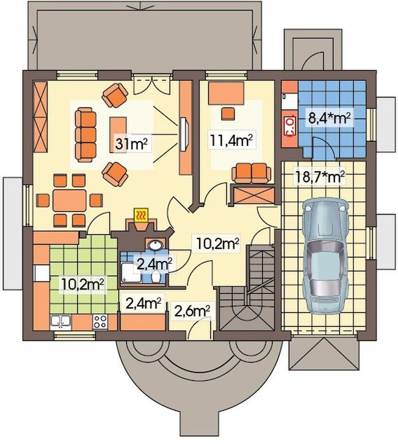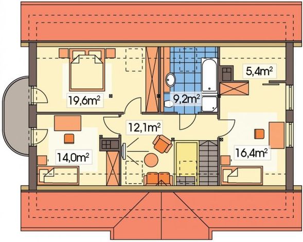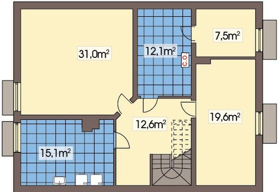 Graficzne opracowanie rzutów poglądowych widocznych na karcie projektu zostało wykonane przez Extradom.pl. Prezentowane przez Extradom.pl wizualizacje wykonane zostały przez autora projektu i należy poczytywać je jedynie za przykład i propozycję wykończenia, wizję architektoniczną autora projektu. Ostateczne wykończenie budynku może nastąpić na wiele sposobów. Szczegółowe rozwiązania zastosowane w oferowanej dokumentacji - w tym również ilość, lokalizacje i wygląd okien, drzwi, kominów - mogą w niewielkim stopniu różnić się od prezentowanej wizualizacji budynku.