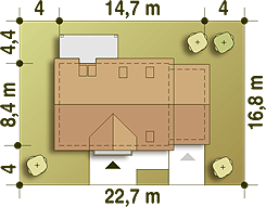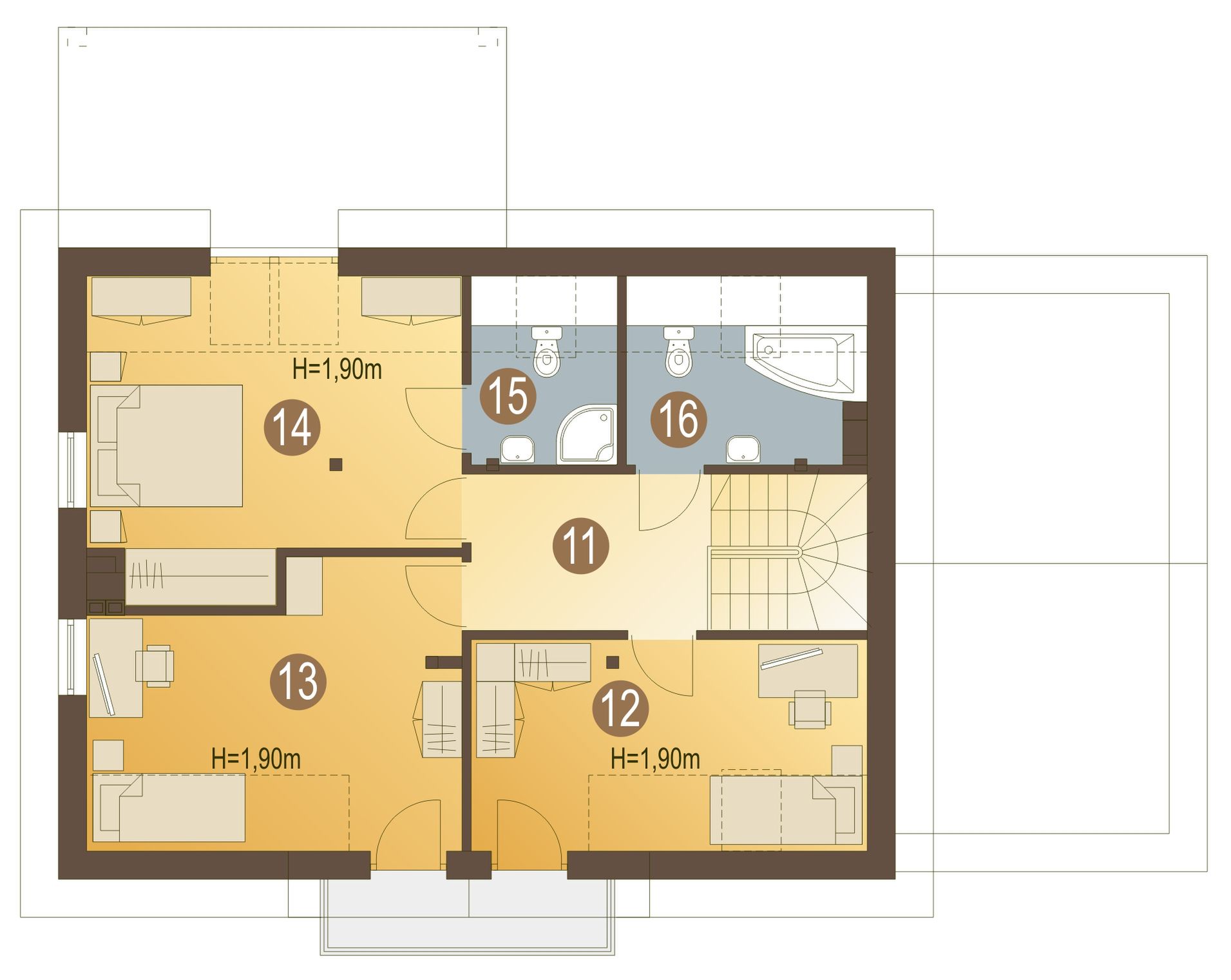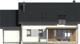 Graficzne opracowanie rzutów poglądowych widocznych na karcie projektu zostało wykonane przez Extradom.pl. Prezentowane przez Extradom.pl wizualizacje wykonane zostały przez autora projektu i należy poczytywać je jedynie za przykład i propozycję wykończenia, wizję architektoniczną autora projektu. Ostateczne wykończenie budynku może nastąpić na wiele sposobów. Szczegółowe rozwiązania zastosowane w oferowanej dokumentacji - w tym również ilość, lokalizacje i wygląd okien, drzwi, kominów - mogą w niewielkim stopniu różnić się od prezentowanej wizualizacji budynku.